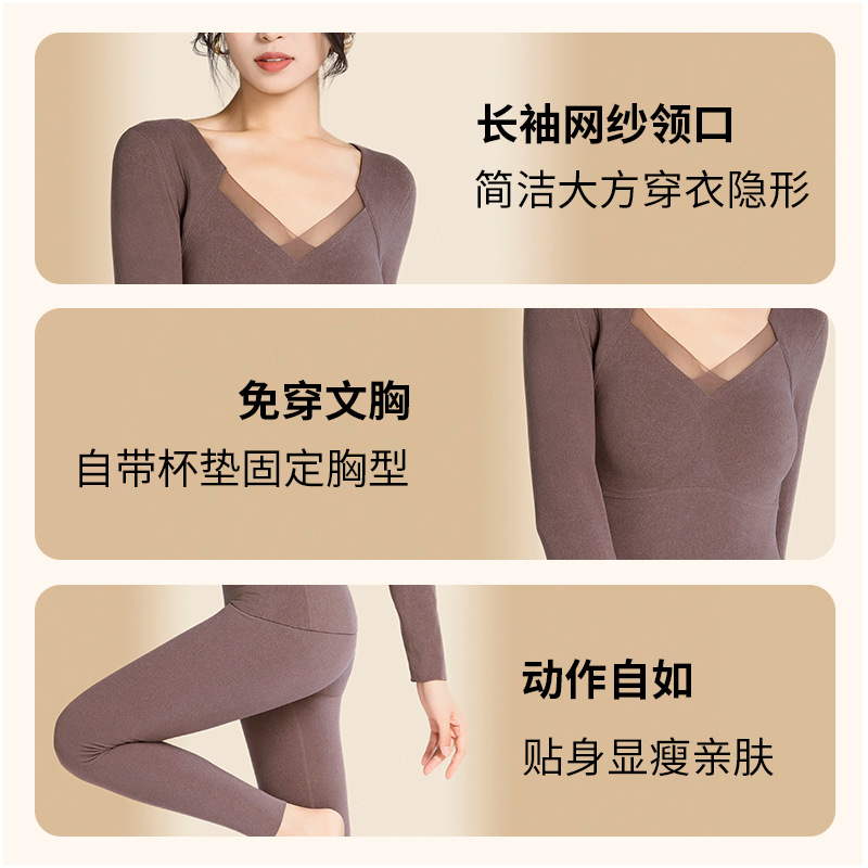 山羊绒桑蚕丝棉保暖内衣套装女士打底衣秋冬长袖德绒秋衣秋裤女