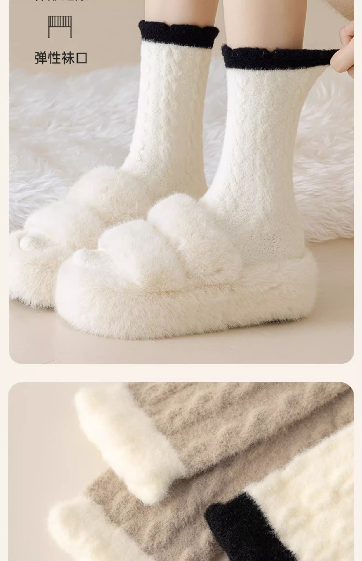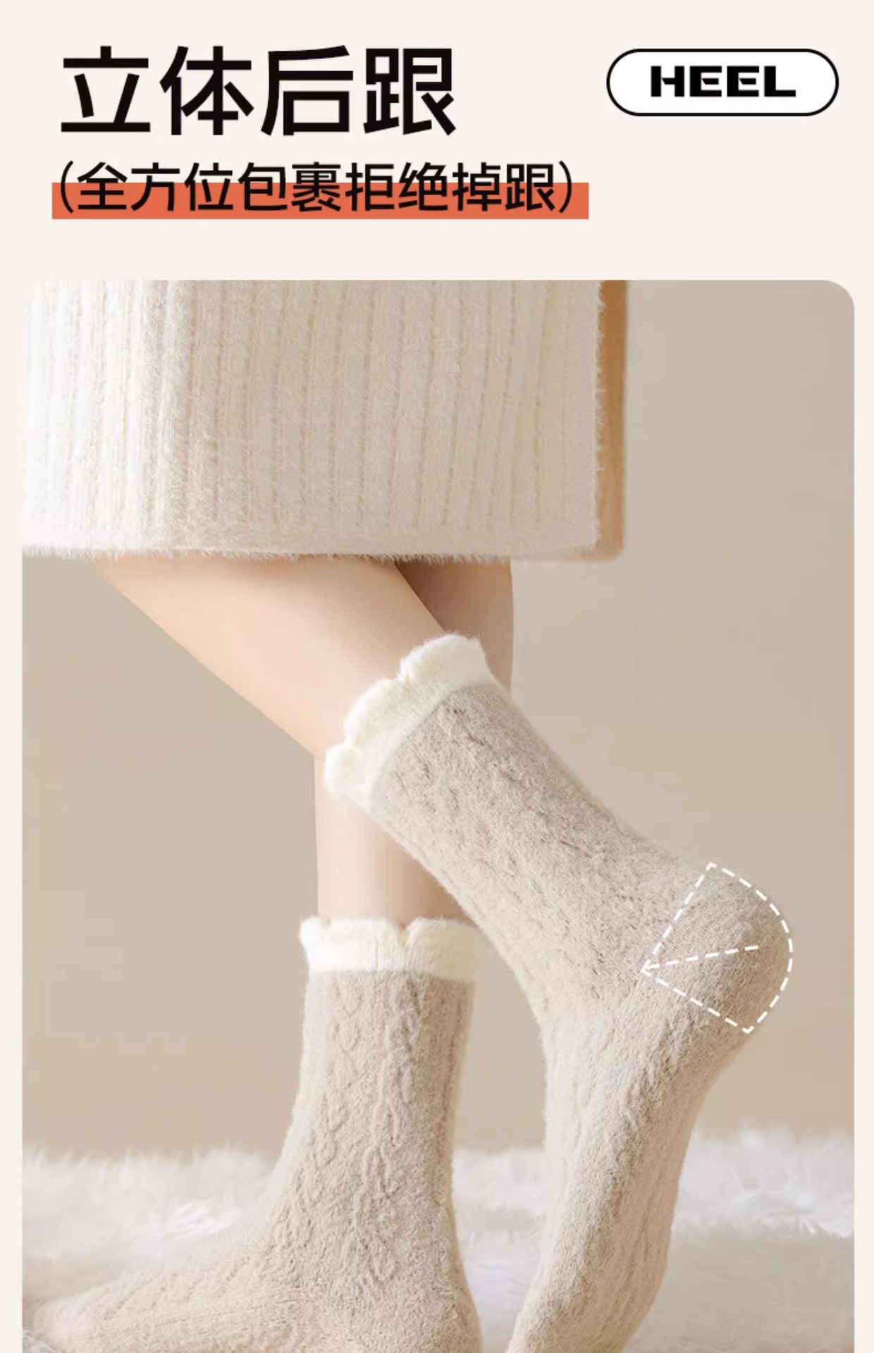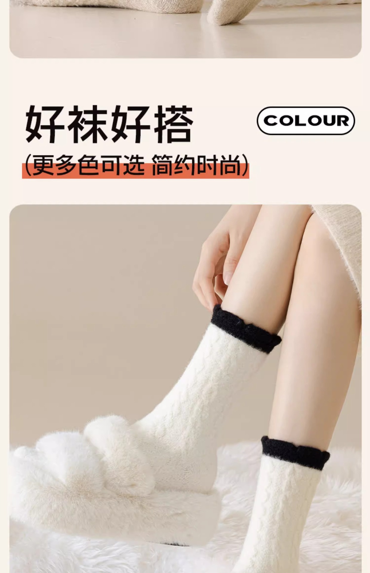 澳绒厚袜子女保暖加绒加厚中筒袜冬季月子袜秋冬美拉德穿搭长筒袜