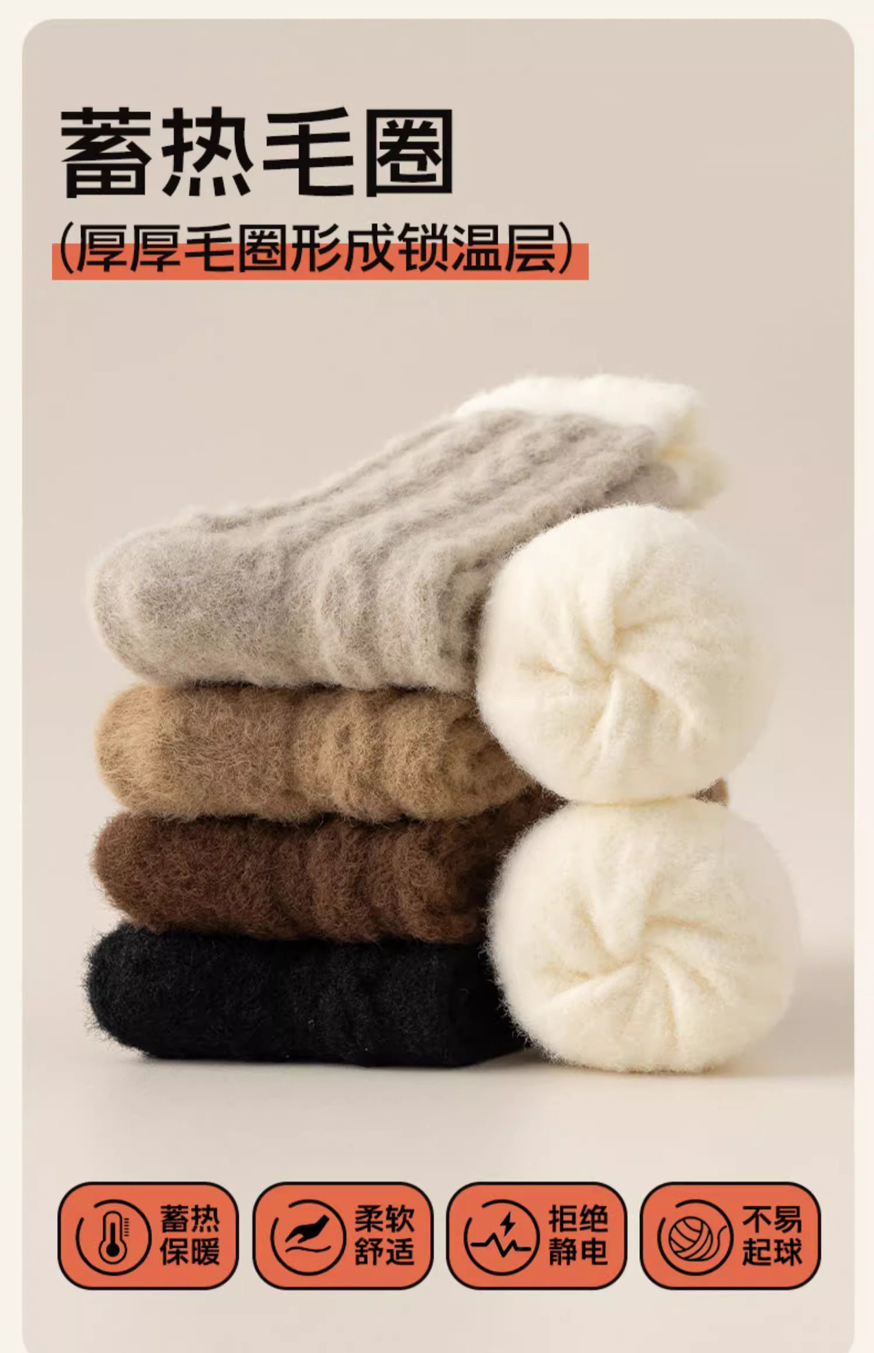 豪毛の厚い靴下の女性の保温とベルベットの厚い中筒靴下冬の月子靴下秋冬の美ラードは湿ったストッキングを着ている