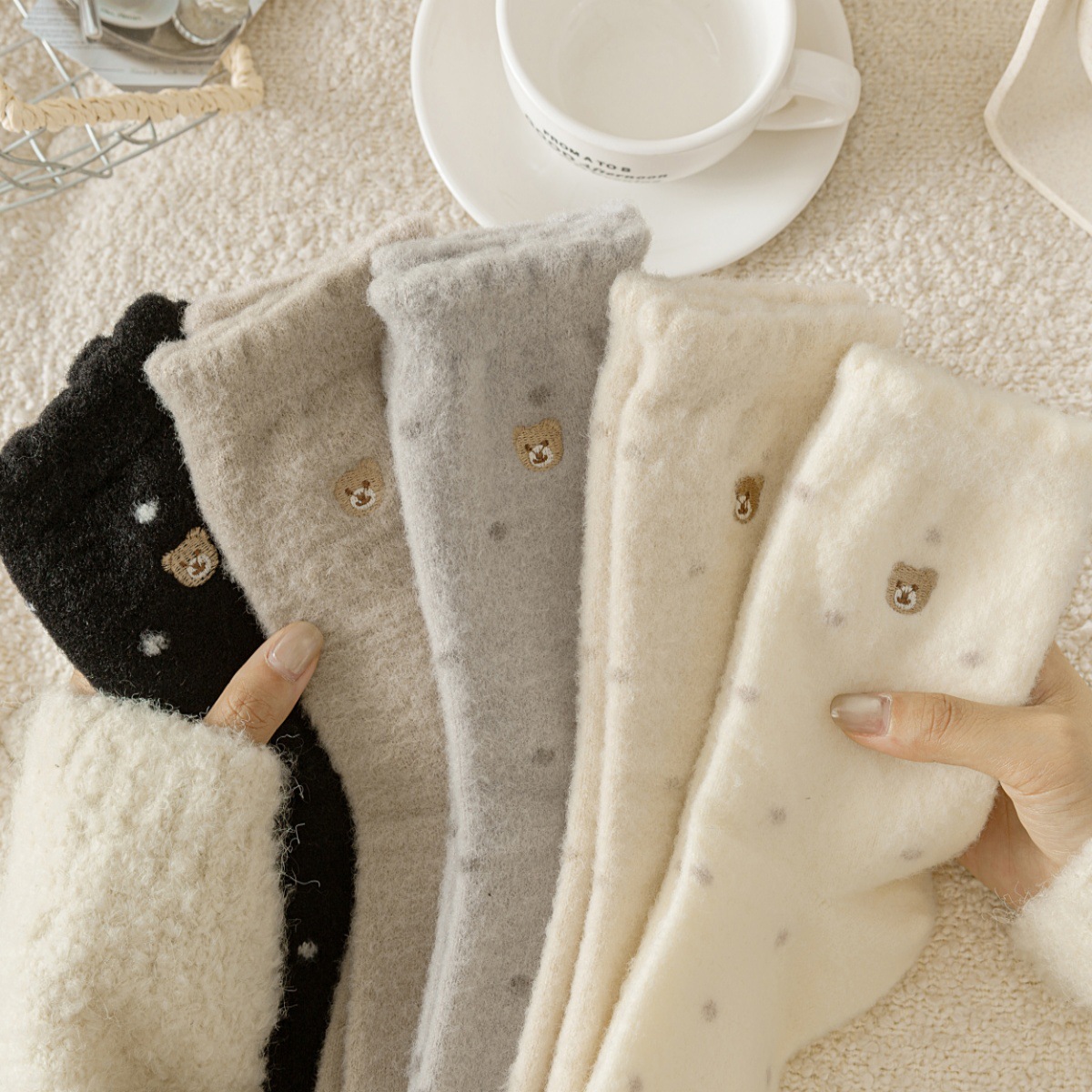 澳绒袜子女秋冬季可爱动物卡通刺绣睡眠中筒袜日系保暖居家地板袜