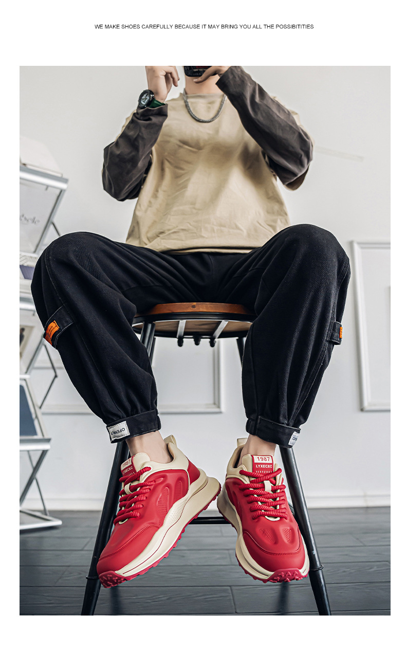 男の靴2025春の新型のファッションは流行のカジュアルな滑り止めの耐摩耗性の小さい大衆の青少年の厚い底のお父さんの靴を合わせます。