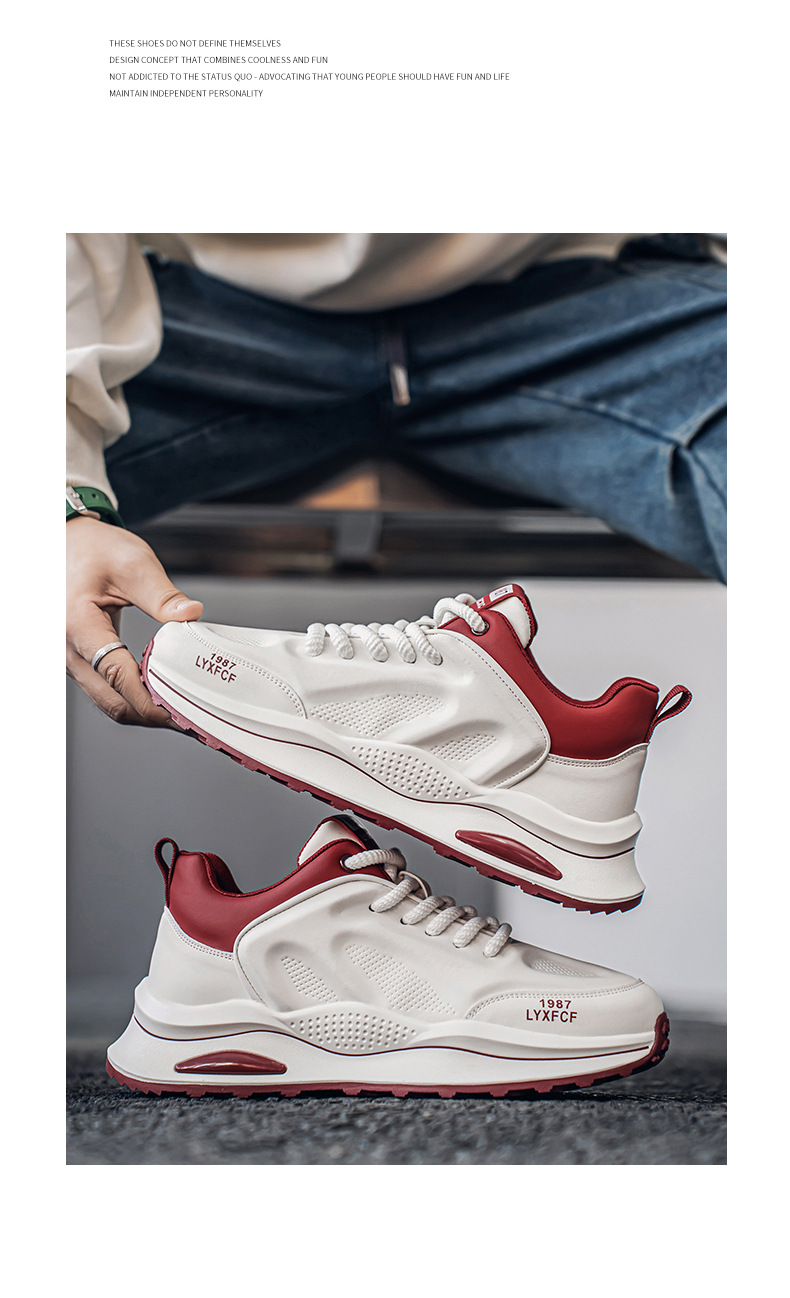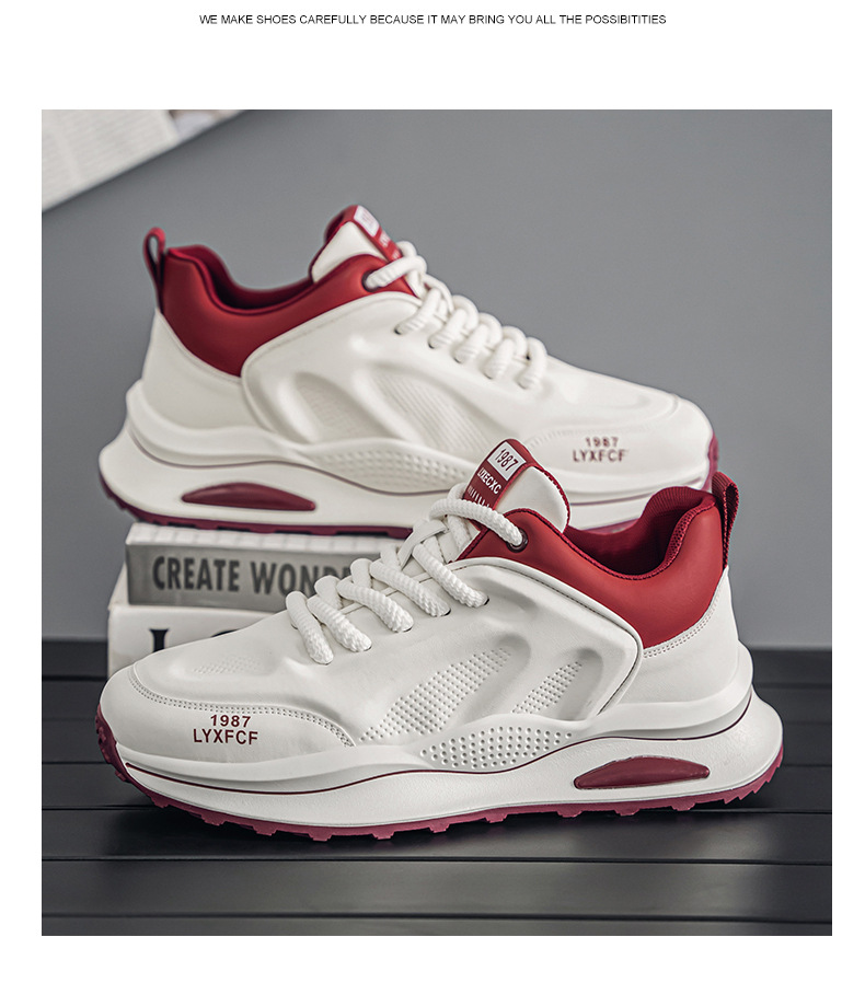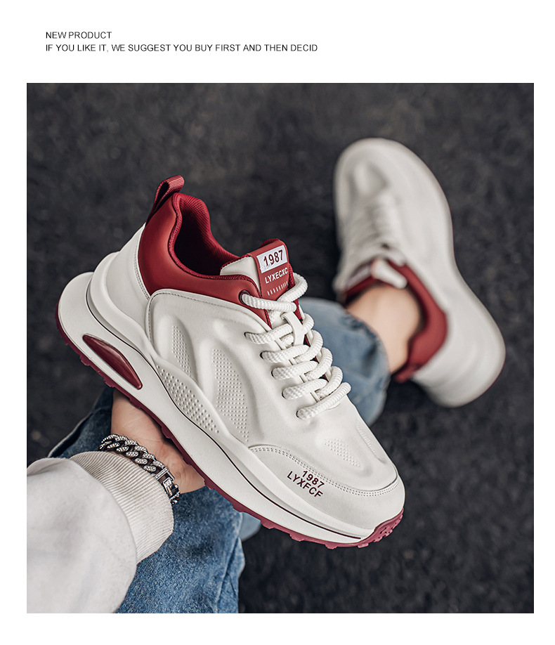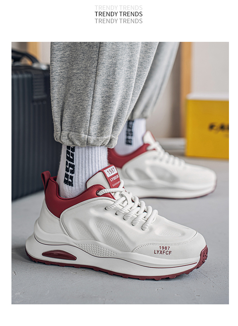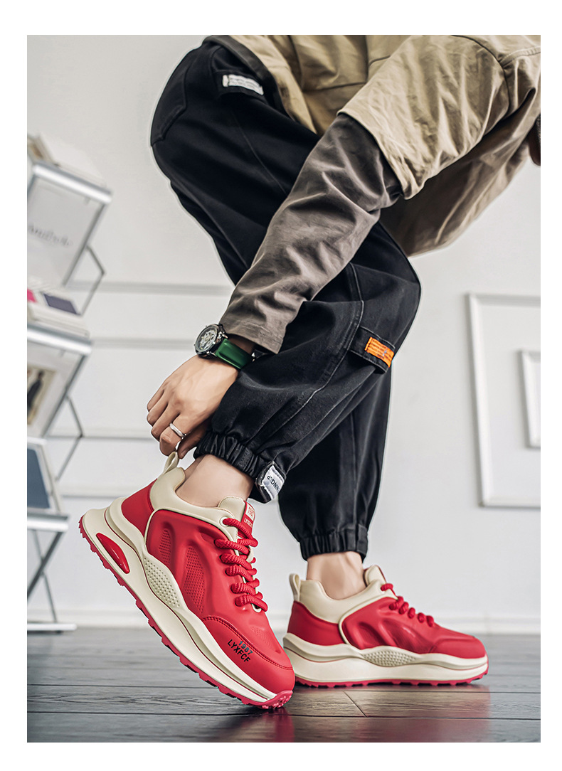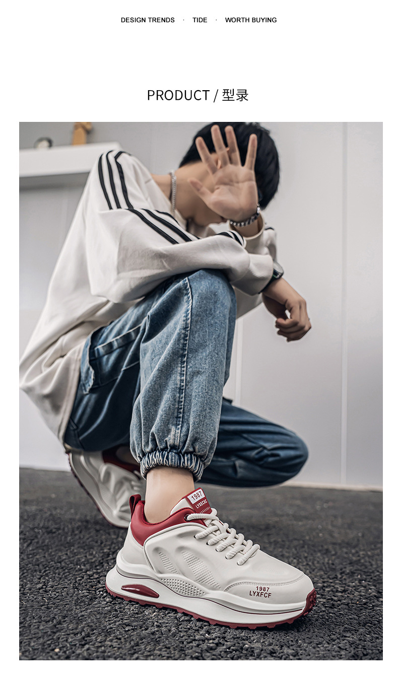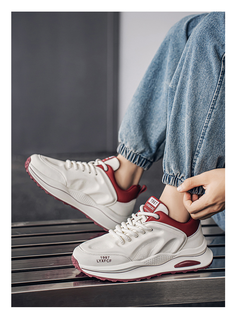 莆田阿甘男靴春のトレンドカジュアルな白いスポーツシューズ男子学生ランニング滑り止めの厚い底のおじさん靴