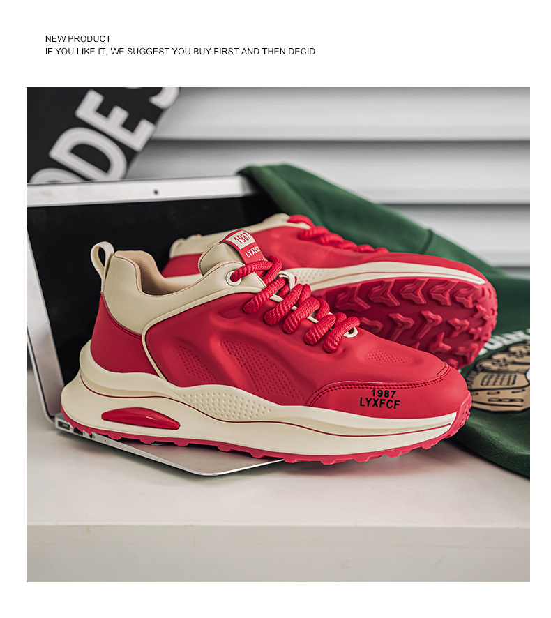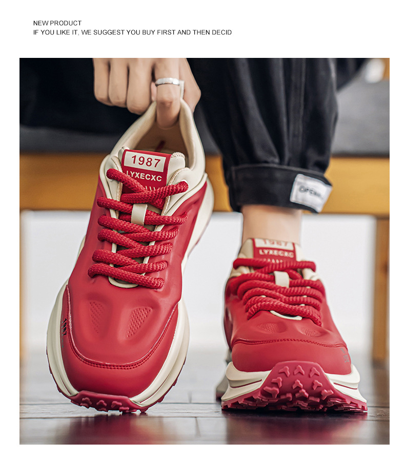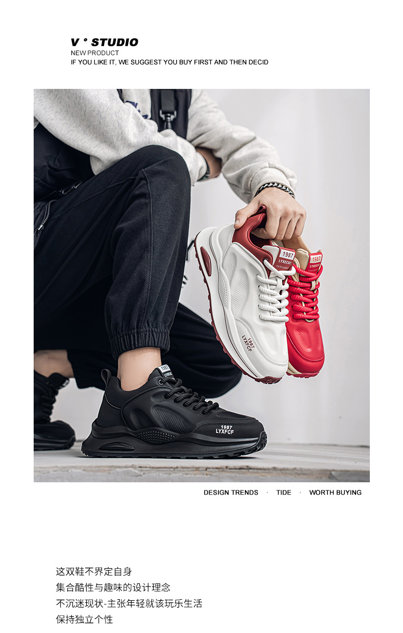 男性靴2025春の新型ファッションファッション運動カジュアルシューズ男性は厚い底を合わせて耐摩耗性のお父さん靴を高くします。