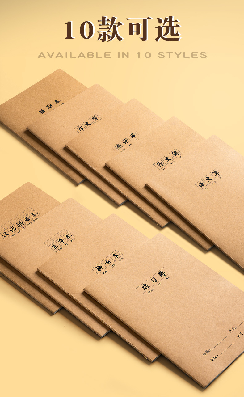 表紙の色 中国語が薄い,イングリッシュシン,数学は薄いです,作文帳 300マス,作文帳 400マス,学生の日記,天子本,練習する,ピンインブック,間違った問題集,語彙ノート,読書ノート,中国語ピンイン本,硬ペン習字ライスグリッド,硬ペン習字フィールドグリッド,ピンイン天の本