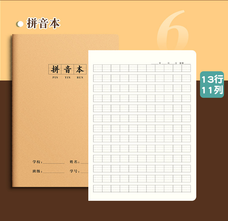 思進牛皮16k仕事帳卸売りノート国語数学科目本ピンイン作文書田字本