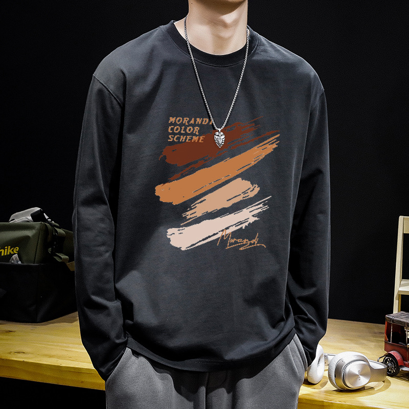 Tシャツ カジュアルで多用途なピュアコットン メンズ ゆったり トレンド ブランド 長袖 インナー 秋 大きいサイズ プリント インス 春秋 ヘビーウェイト