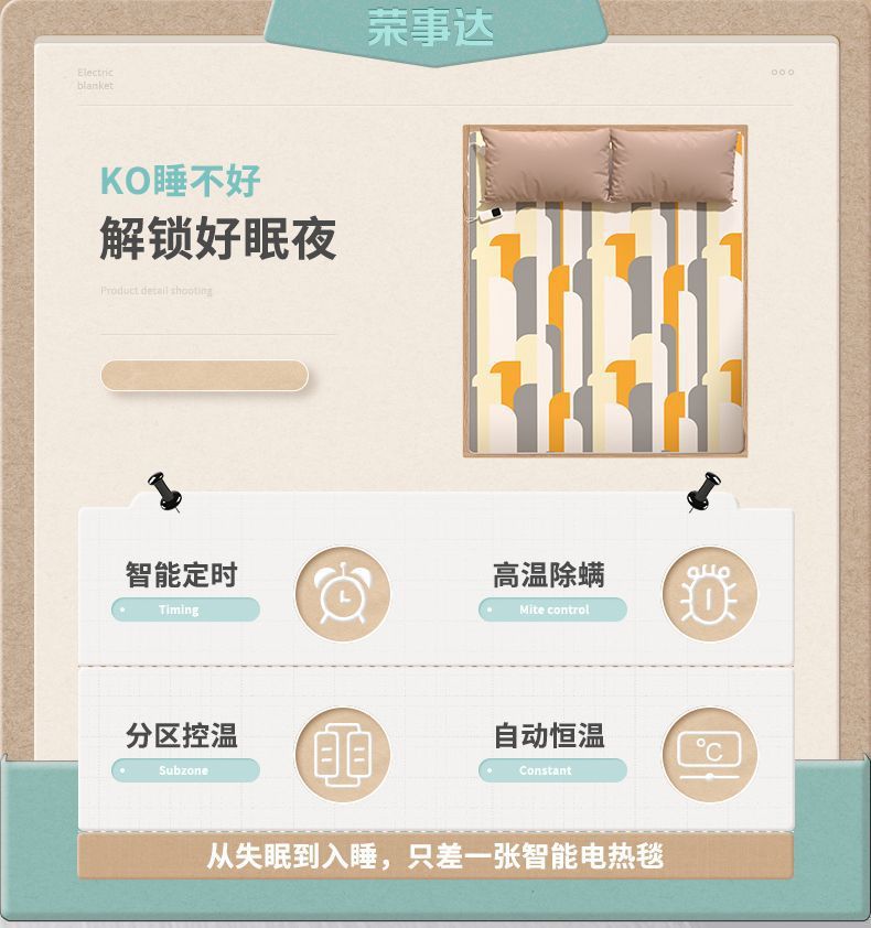 栄事達電気毛布二人二重制御温度調節一人学生寮電気布団新型加熱座布団