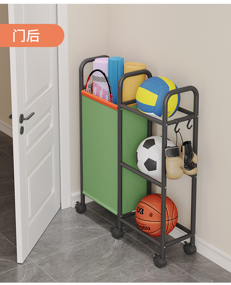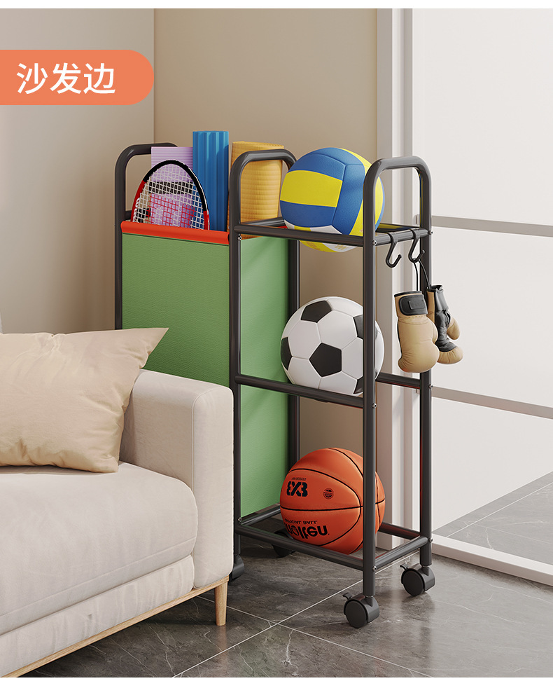 ボール収納バスケット家庭用カートバドミントンヨガマット挟み収納棚フィットネス運動器材棚