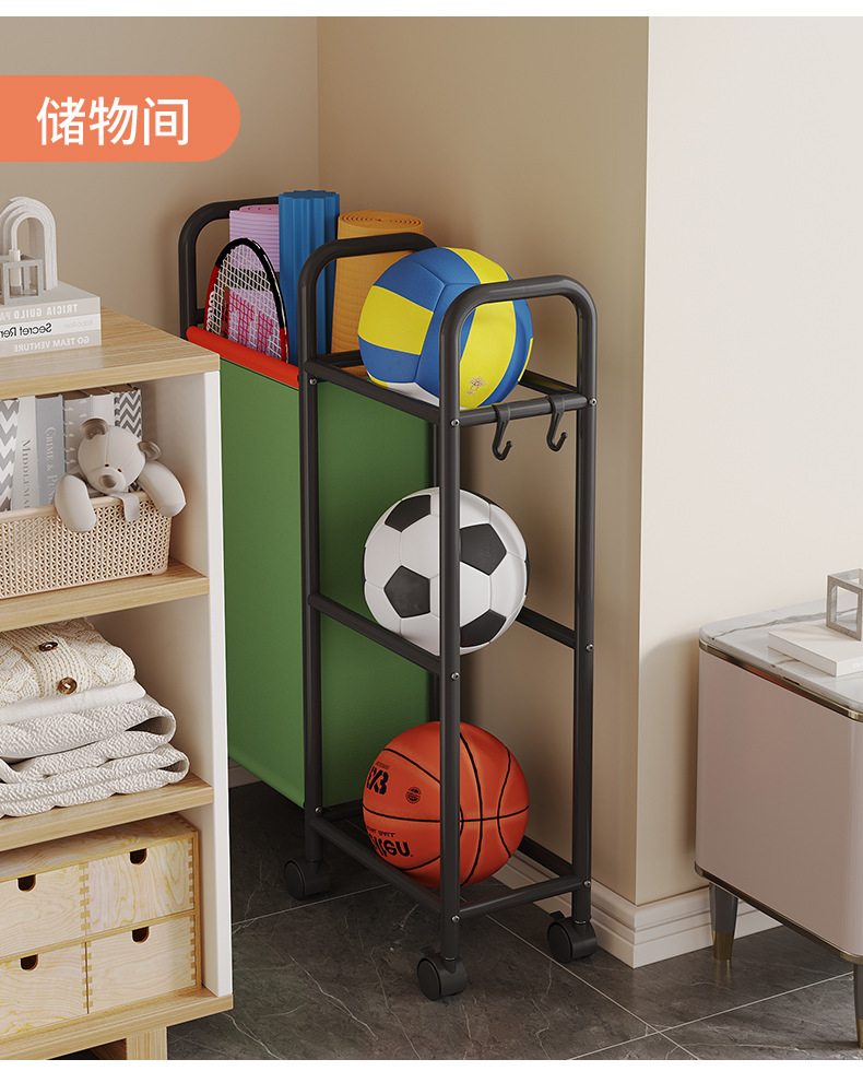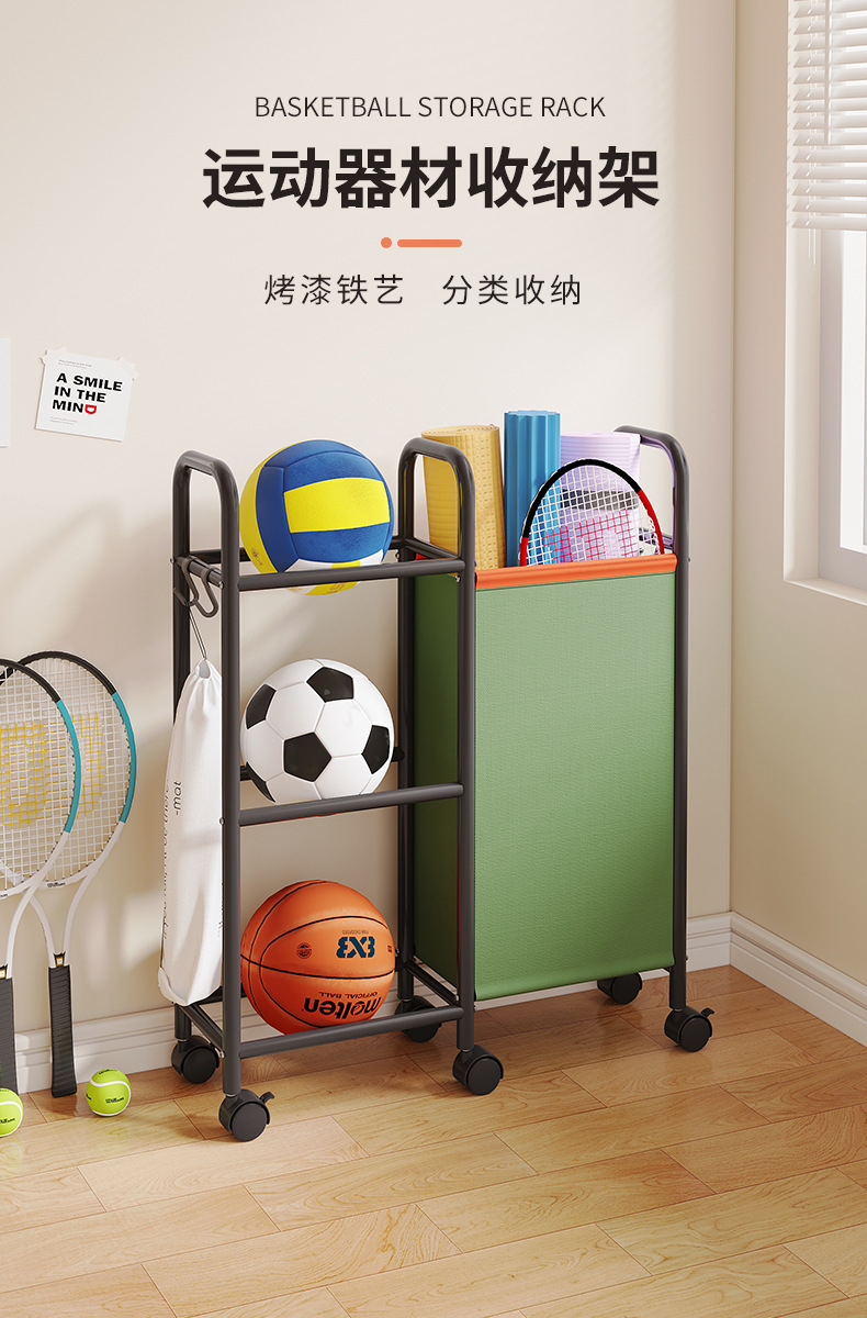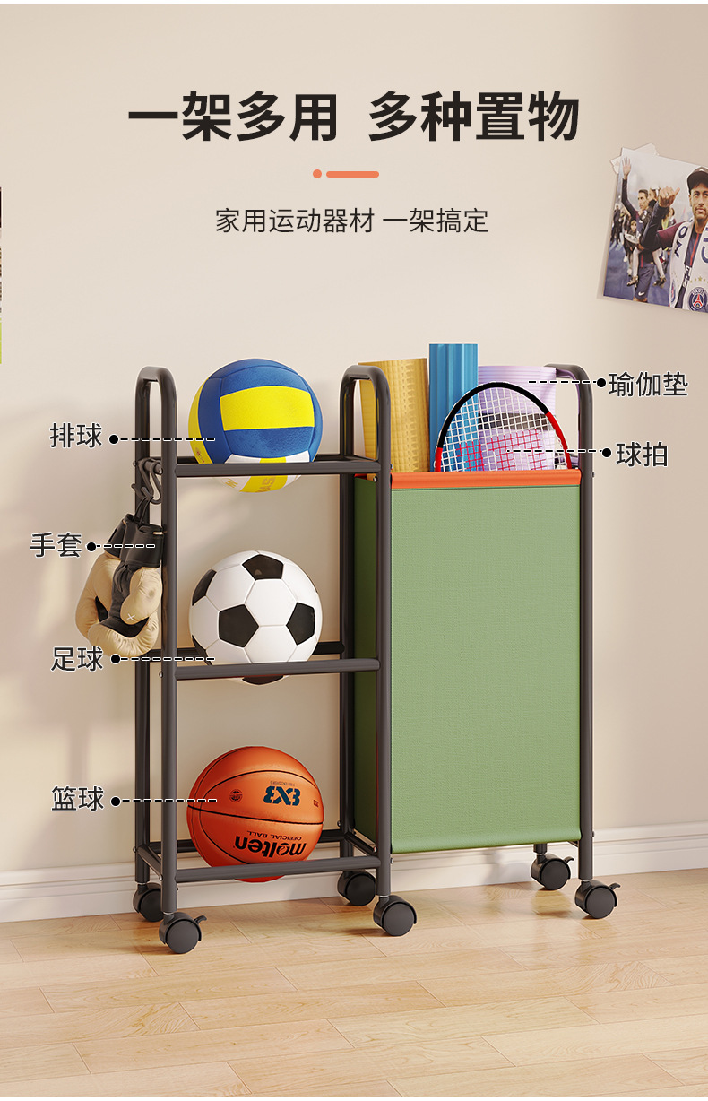 バスケットボール収納棚輪付きヨガマット収納かご運動フィットネス器材収納バドミントンラケットボール類置物棚