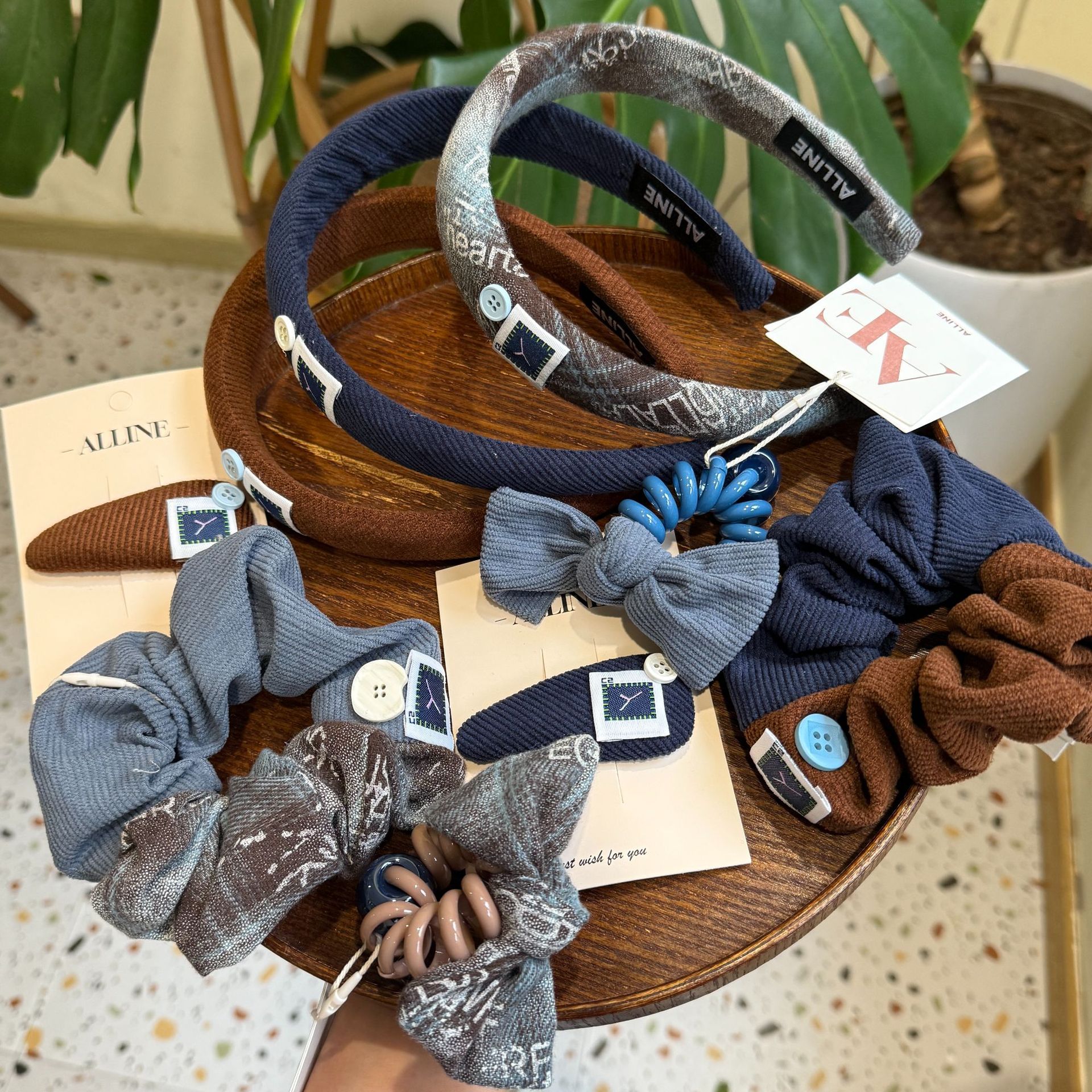 alline秋冬必备韩版复古高智感深蓝发圈优雅高级感头绳甜美发圈