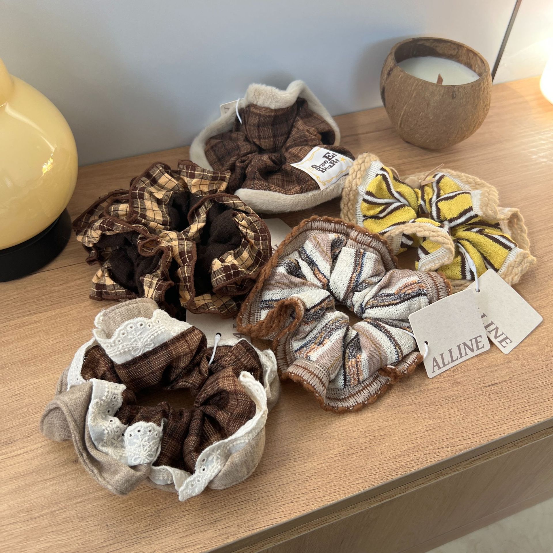 新款秋冬美拉德布标针织发圈撞色韩风少女丸子头大肠发圈头绳发绳