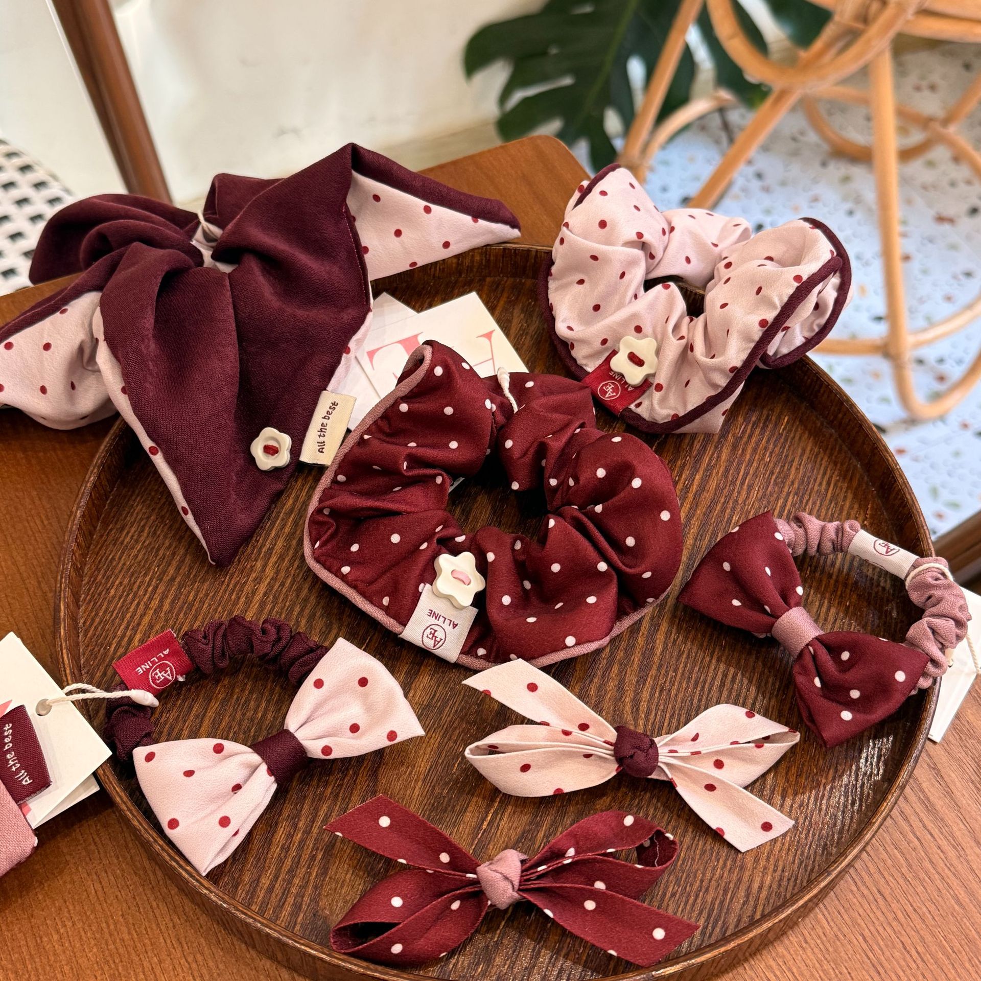 Alline韓国版レトロピンクポイント大腸シュシュ甘くて高級感があります。