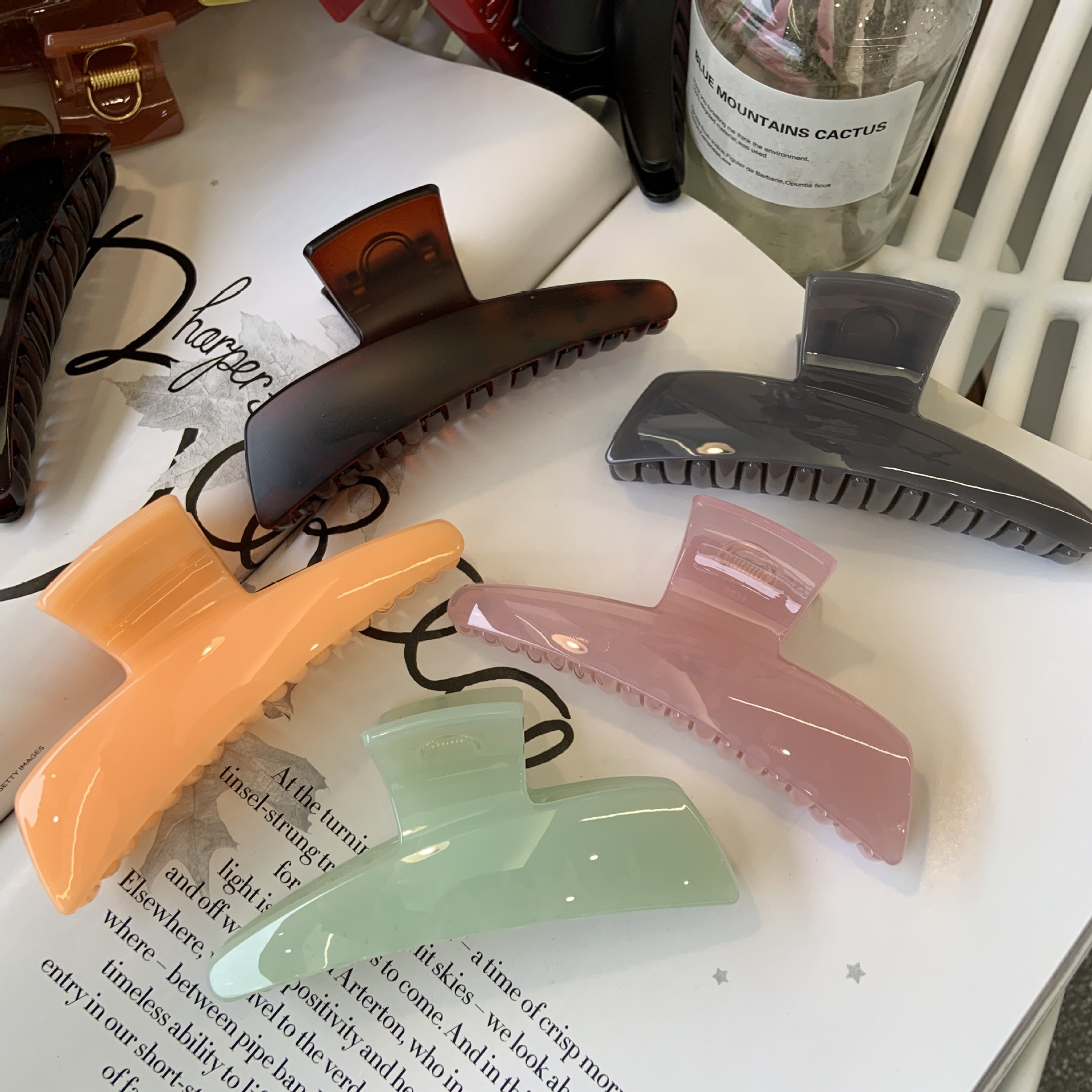 ギャル風髪掴みy2k純色酢酸ゼリー色クリップ変色ヘアクリップシンプルな大サイズドーパミンサメクリップ