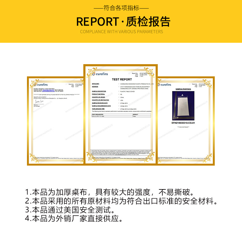 メーカー直販使い捨てアマゾン国境を越えたパーティーpevaドットテーブルクロスとポリエステルテーブル旗防水防油
