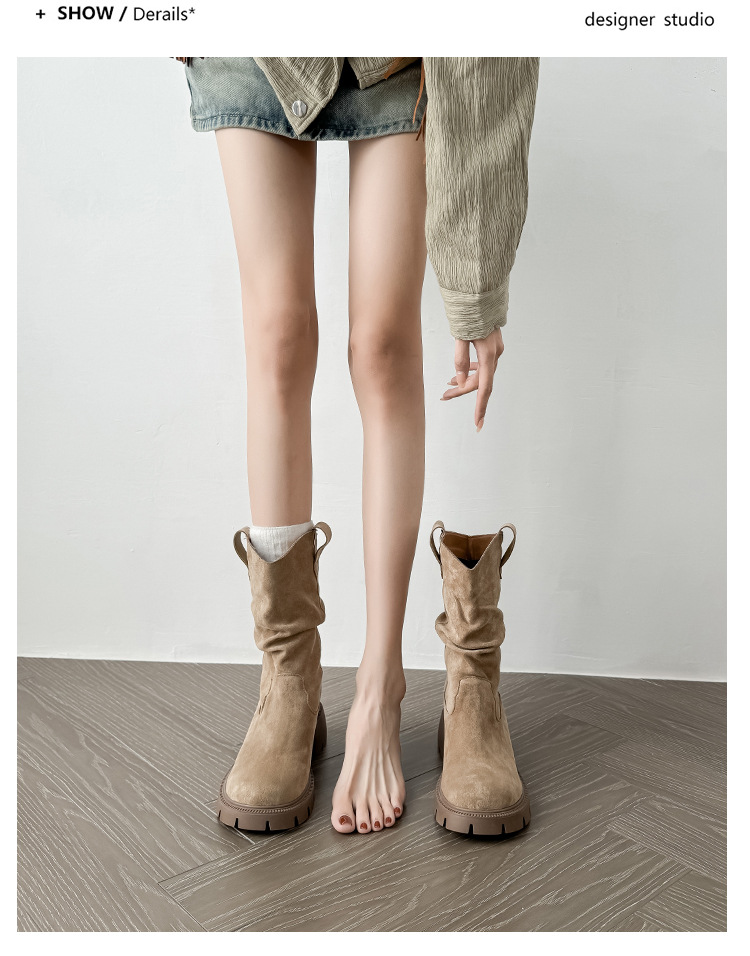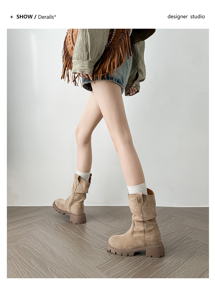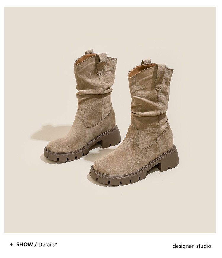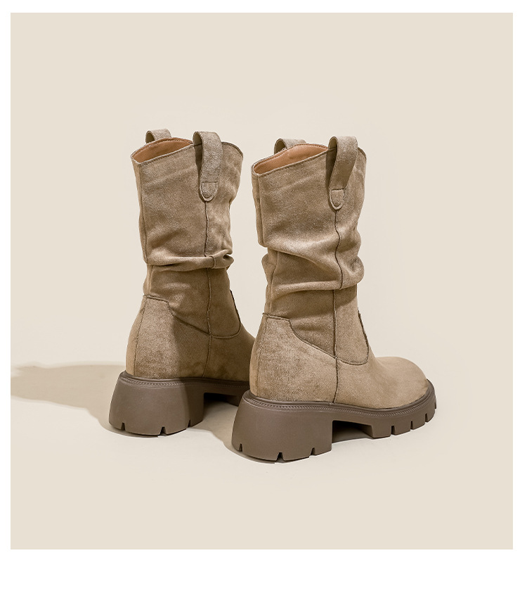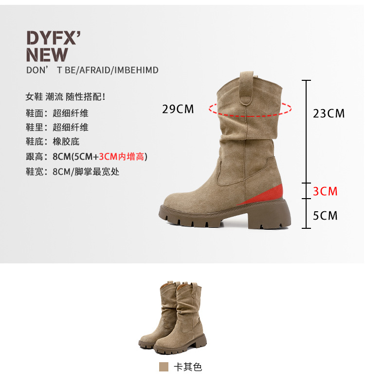 小个子短靴女2025年新款秋冬绒面复古堆堆靴厚底8cm内增高马丁靴