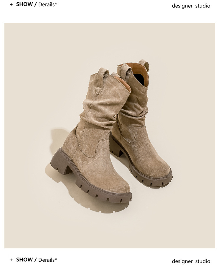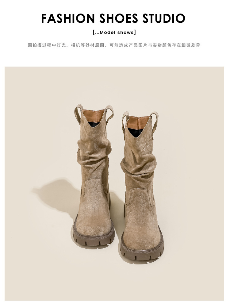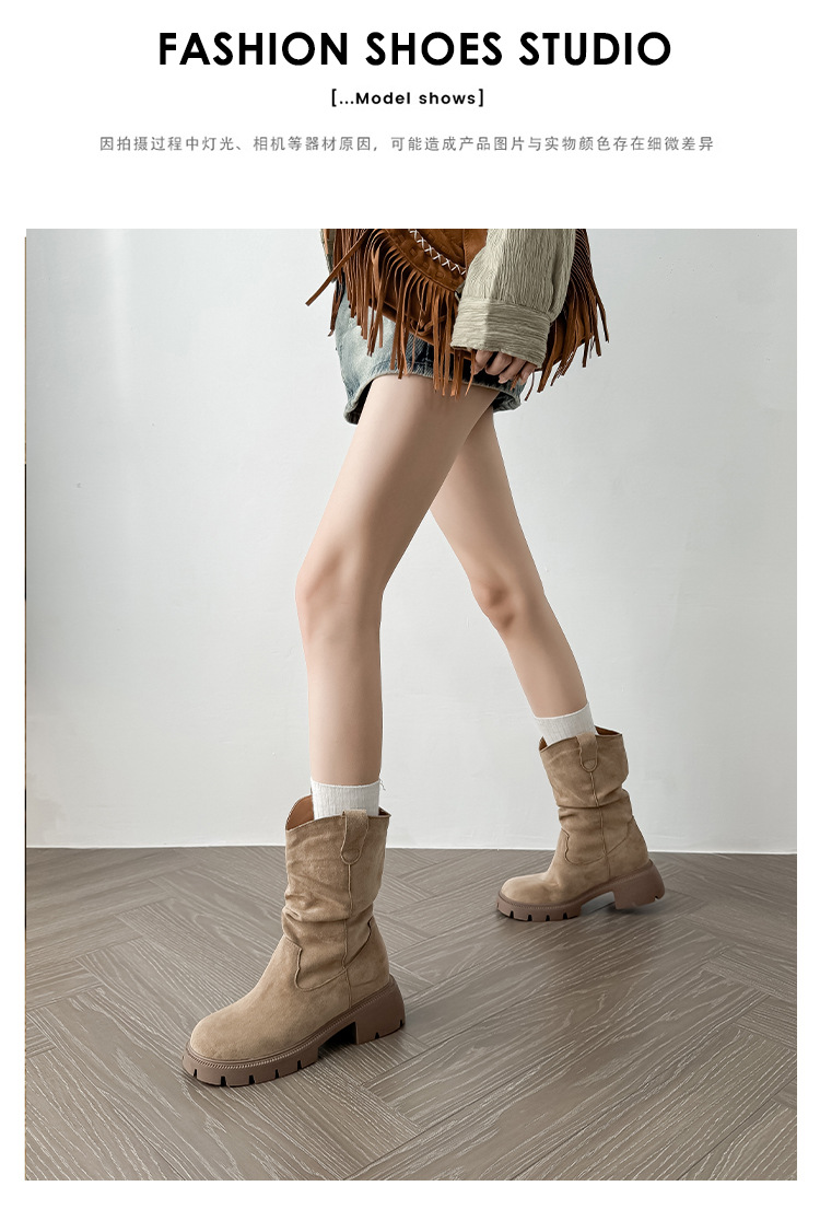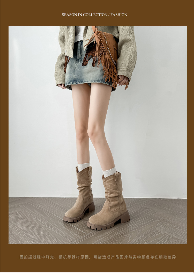小个子短靴女2025年新款秋冬绒面复古堆堆靴厚底8cm内增高马丁靴