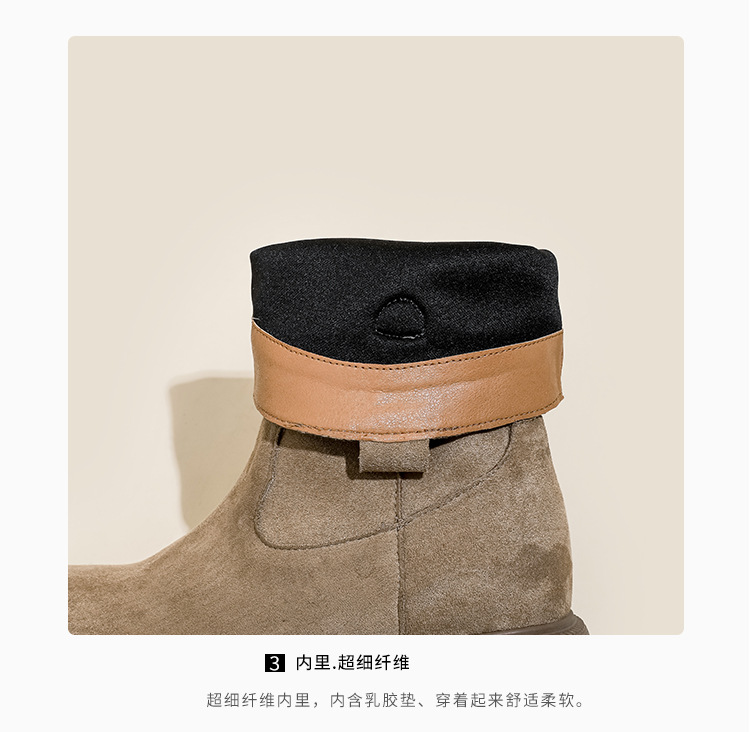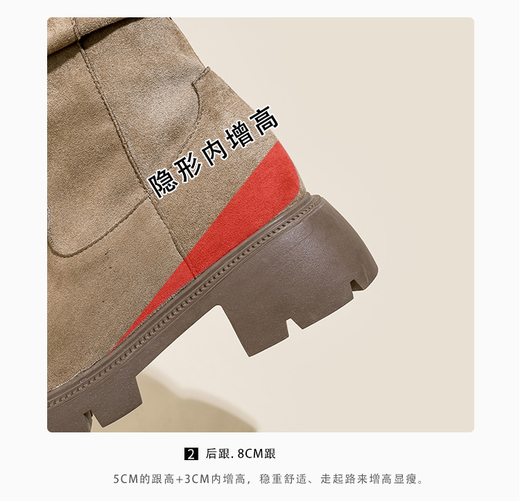 内增高马丁靴女秋冬季新绒面美拉德卡其色复古尖头小个子短靴