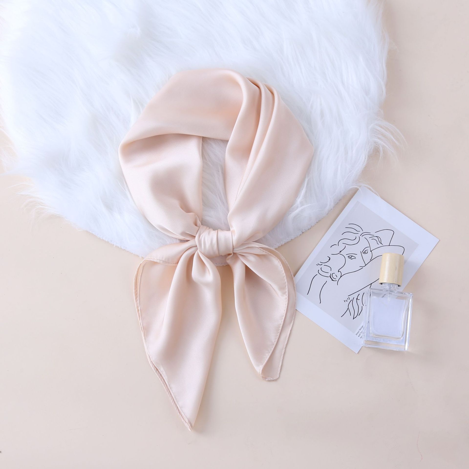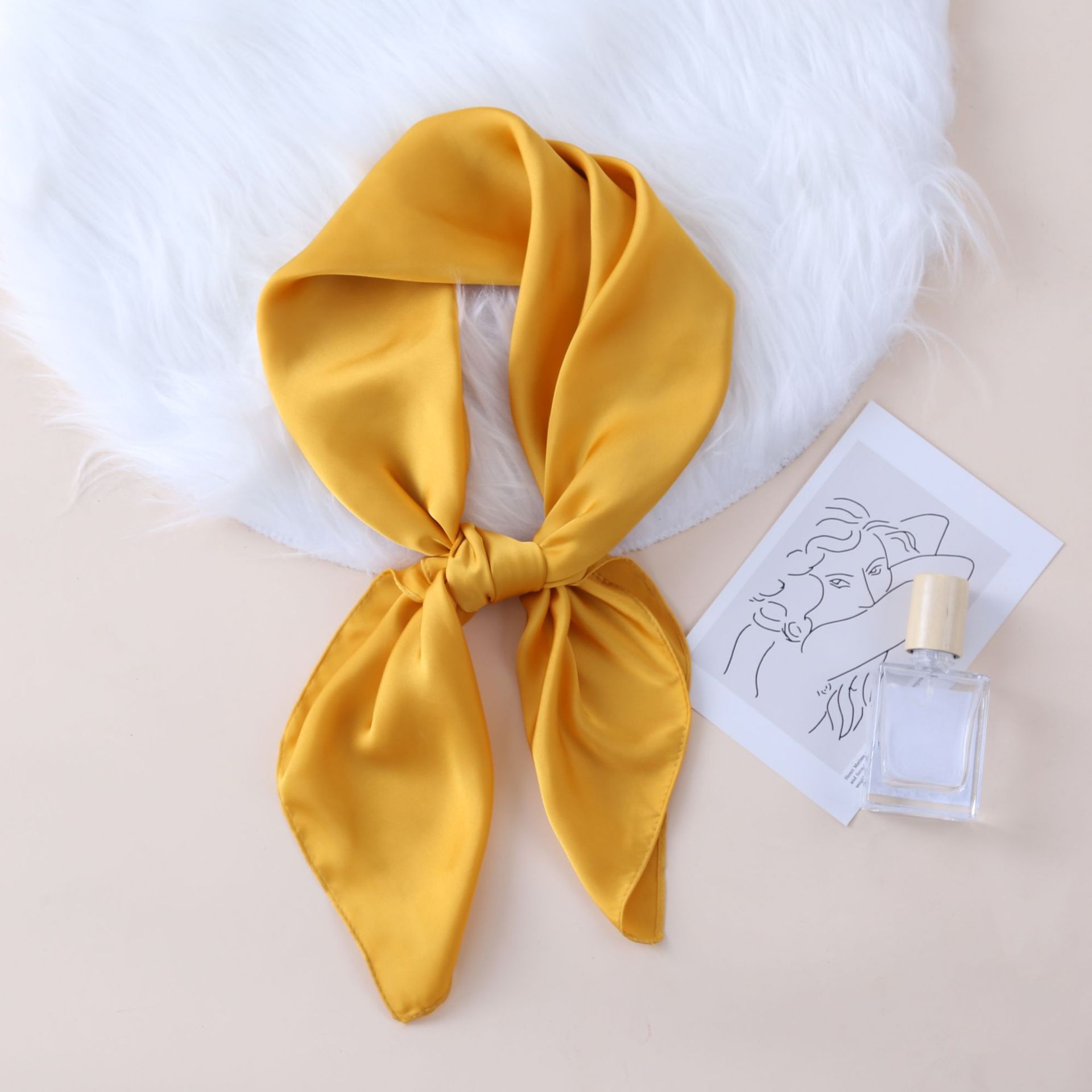 純色のシルクタオルの小さい方のタオルの女性の春秋の簡単な襟のタオルの韓国の百合のヘアバンドは夏のマフラーの職業のリボンを飾ります。