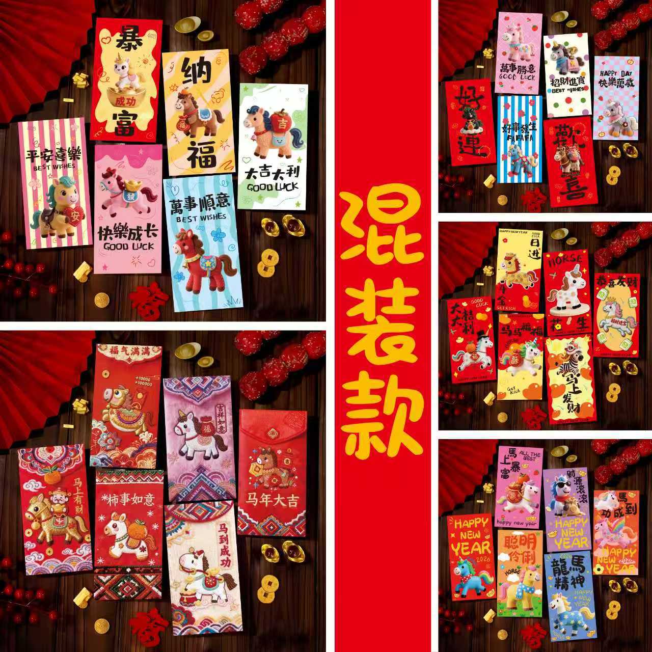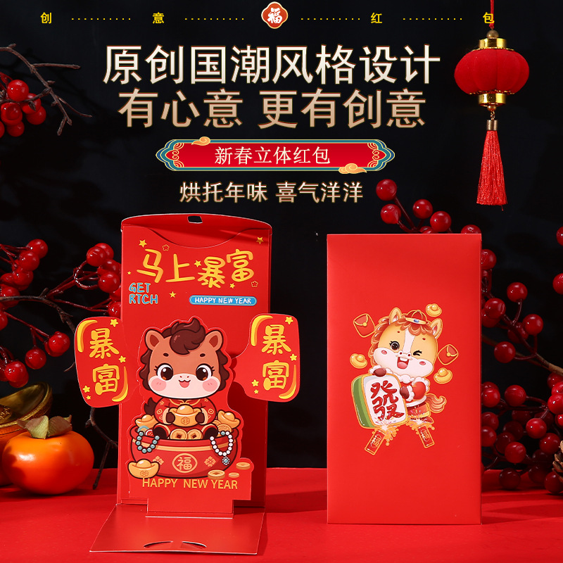 中式马年ins创意红包多款式立体小马利是封新年祝福压岁红包批发