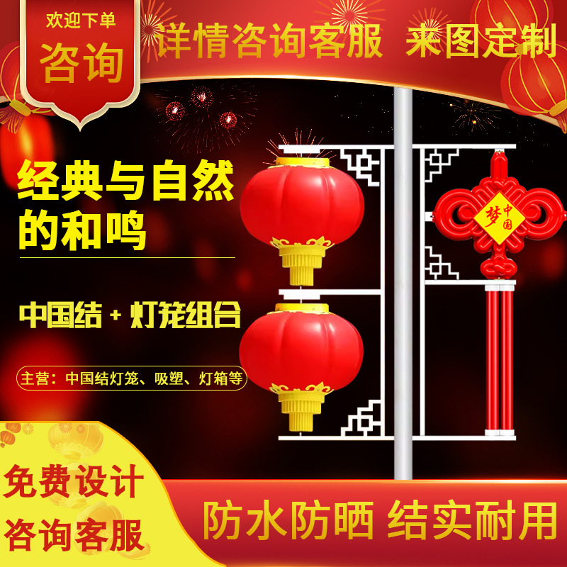 LED中国结路灯户外防水街道太阳能市电双面发光中国结灯笼厂家