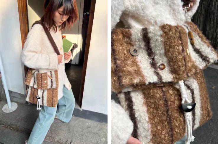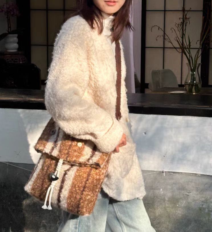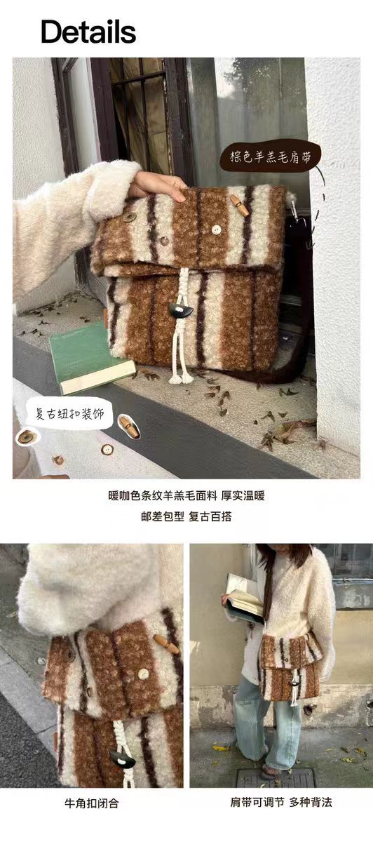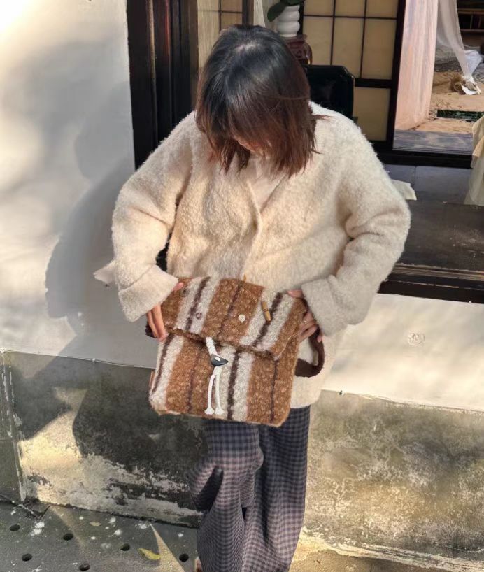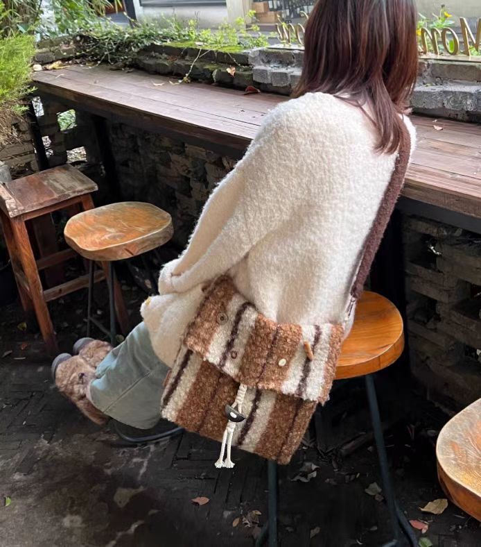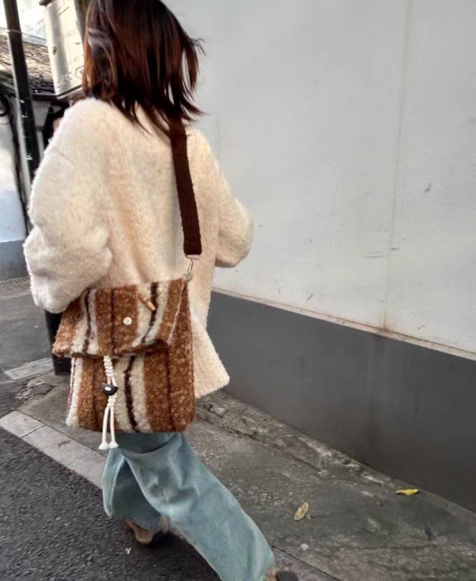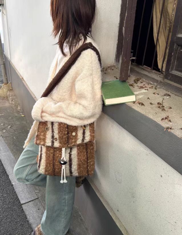 Nothe Cas「松巧散歩」のストライプの毛は、肩の斜めショルダーバッグがだるくて、大容量の郵便便のカバンです。