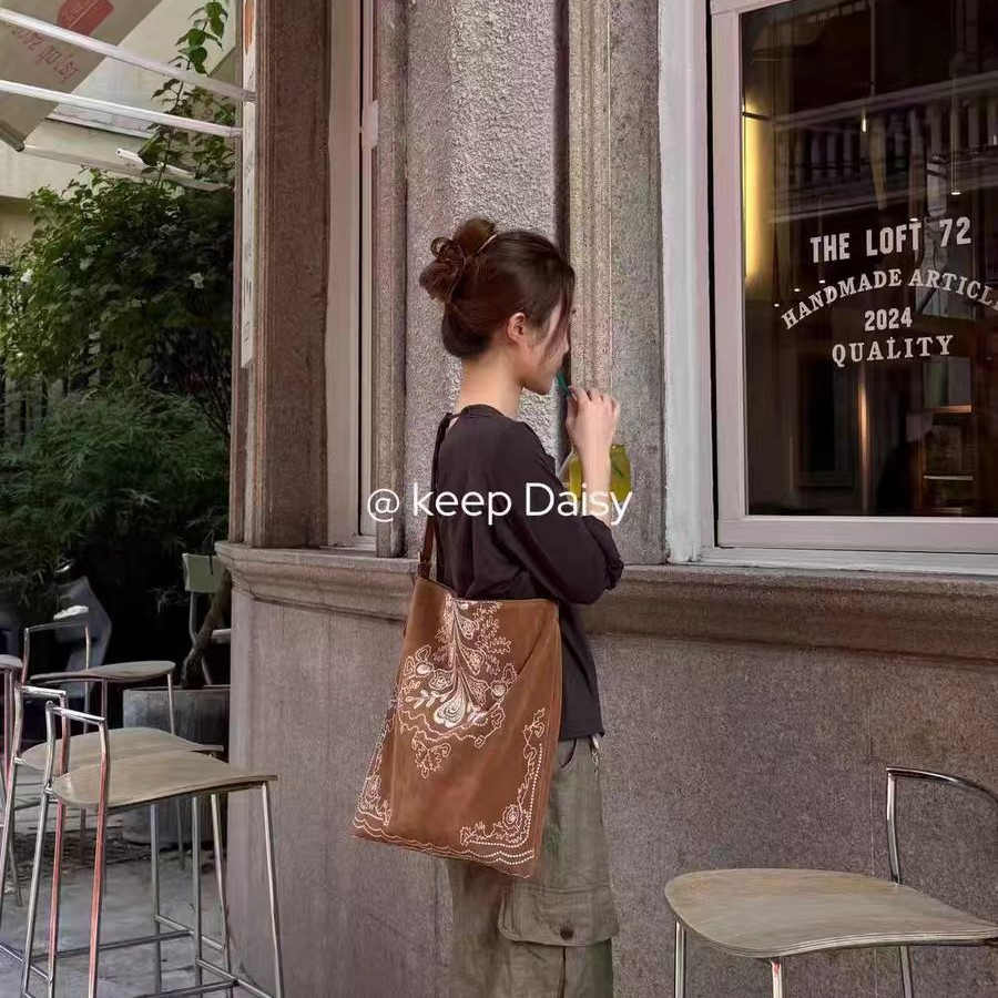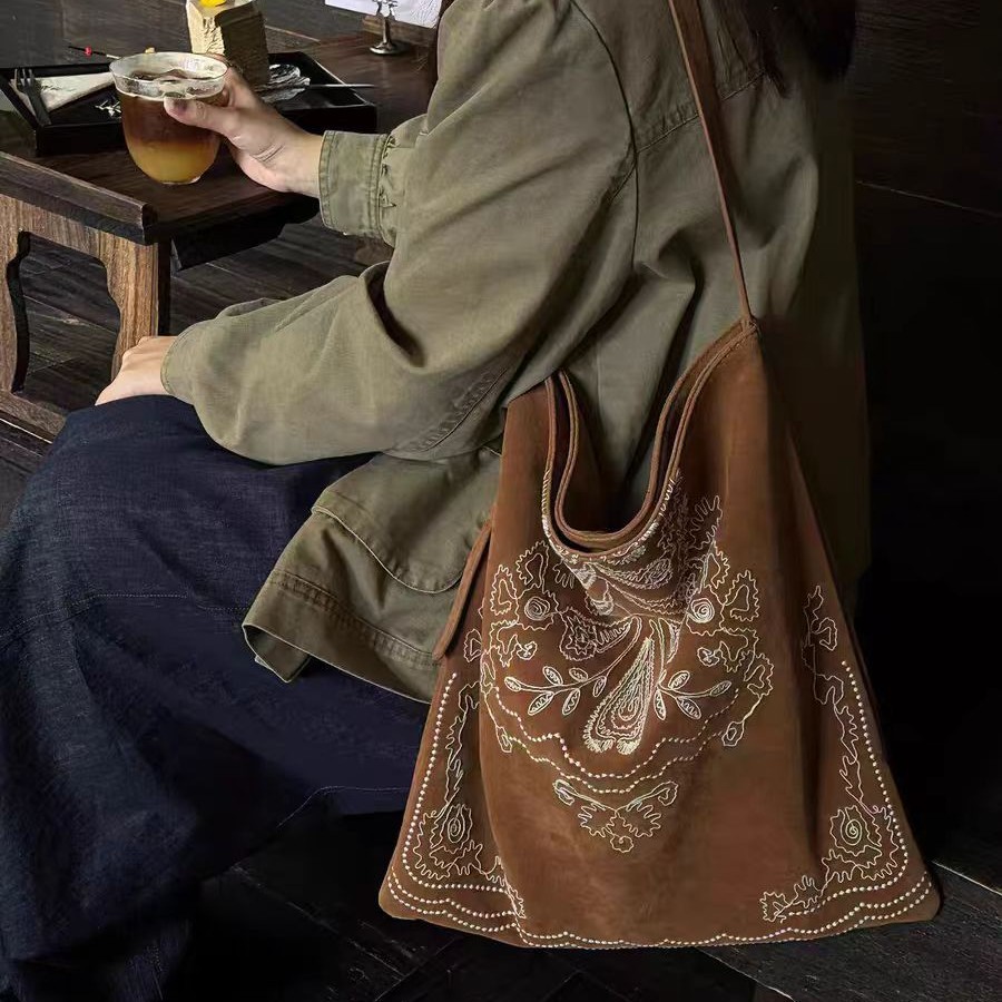 柏雪推荐【西部异域】进口环保麂皮钩花托特包刺绣民族风购物袋包