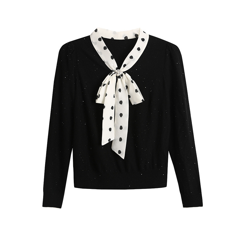 设计感v领波点蝴蝶结针织衫女2025秋季新款重工亮片时尚百搭上衣