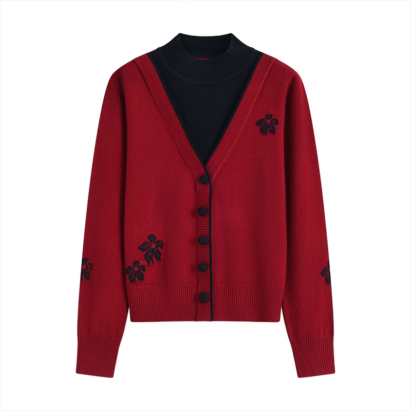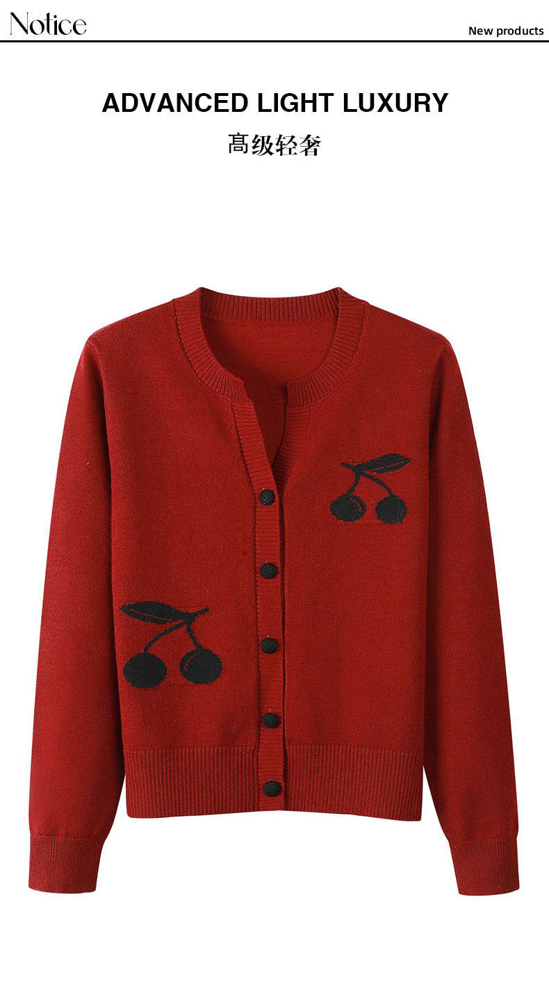 本命年圣诞红色针织开衫女2025秋冬新款圆领长袖爱心刺绣羊毛上衣