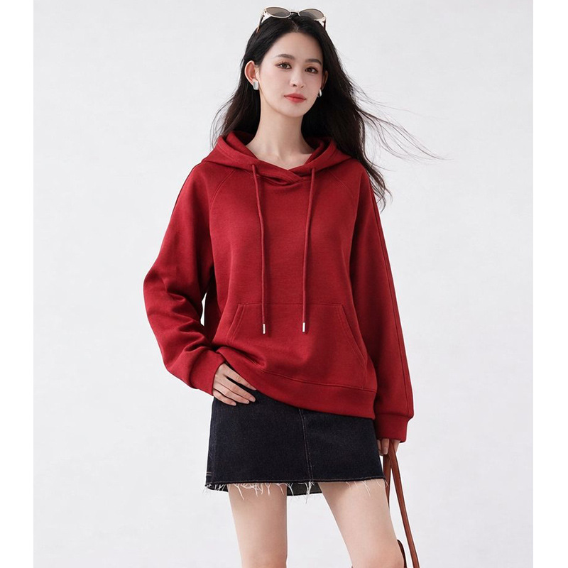 本命年酒红色抽绳连帽卫衣女2025秋冬新款小个子休闲时尚百搭上衣