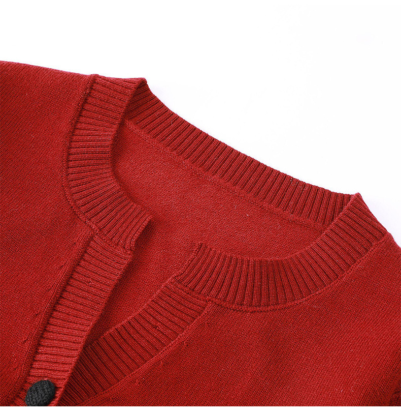 重工镶钻圆领长袖针织开衫女2026早春新款本命年红色羊毛显瘦上衣