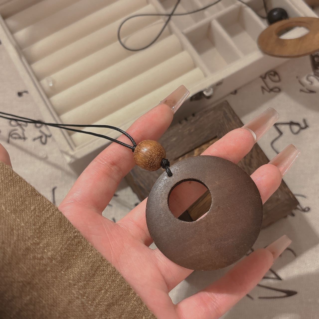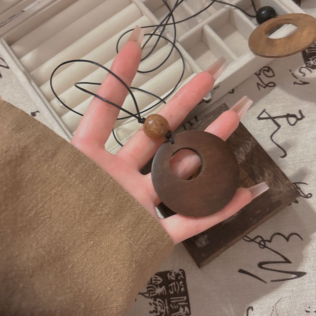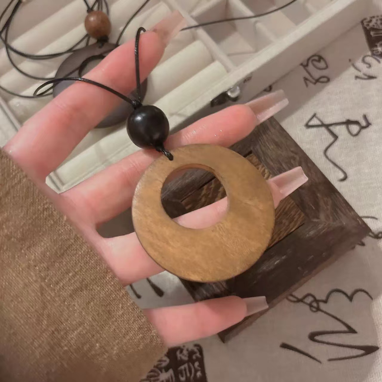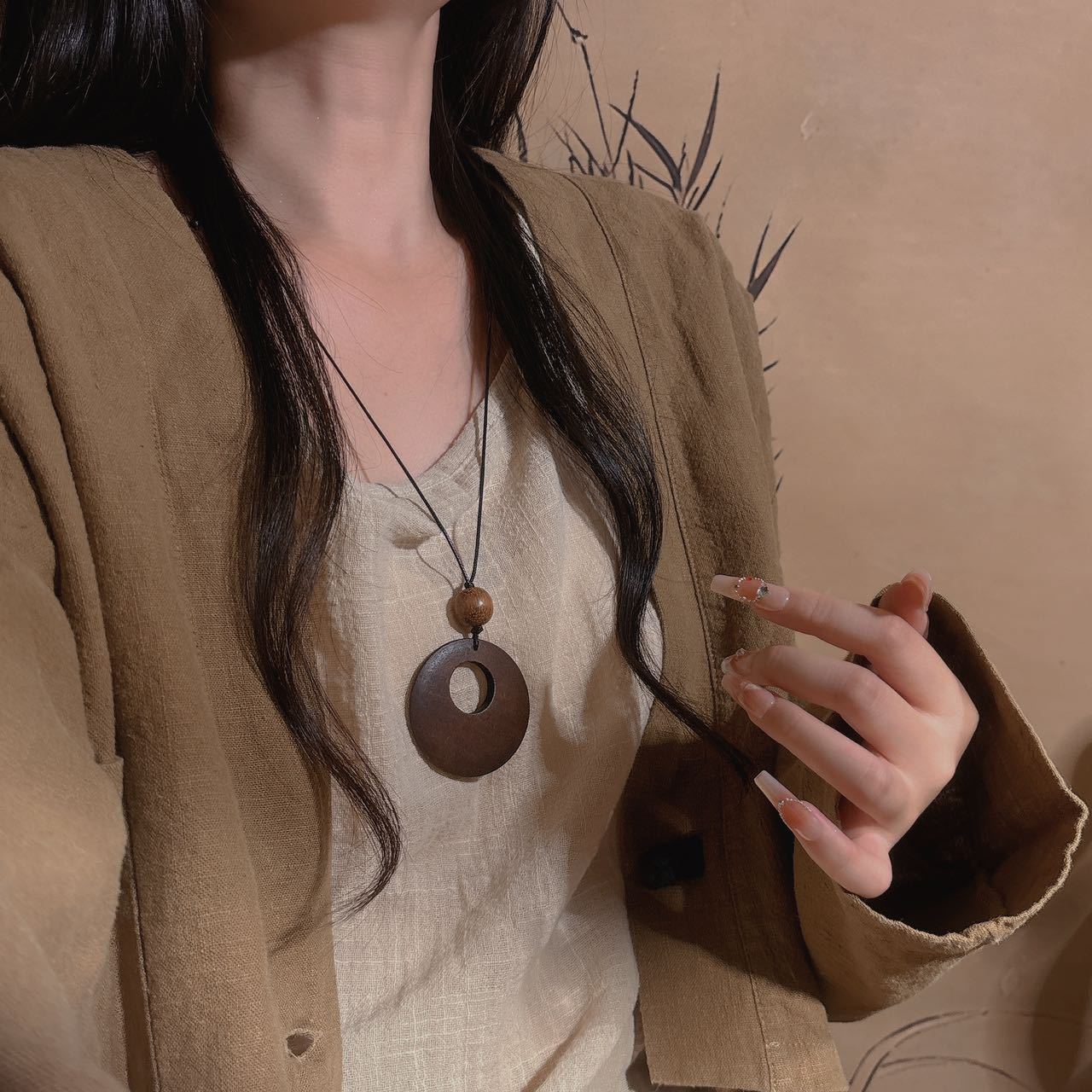 民族風禅意長型円ネックレスボヘミアン新中国風毛衣チェーン黒縄廃土風アクセサリー