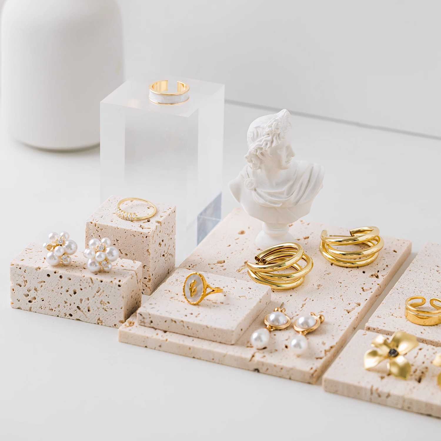 天然洞石ジュエリーネックレスジュエリーイヤリング撮影大理石アクセサリー撮影道具背景布