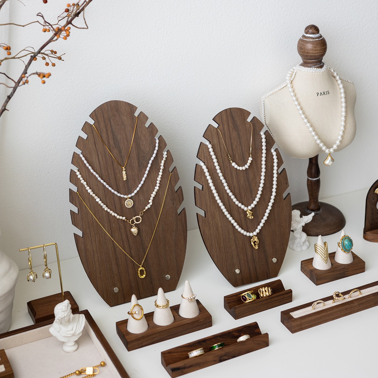 胡桃木アクセサリー陳列道具ジュエリートレイイヤリングネックレスブレスレット階段展示棚ジュエリー実木ベース