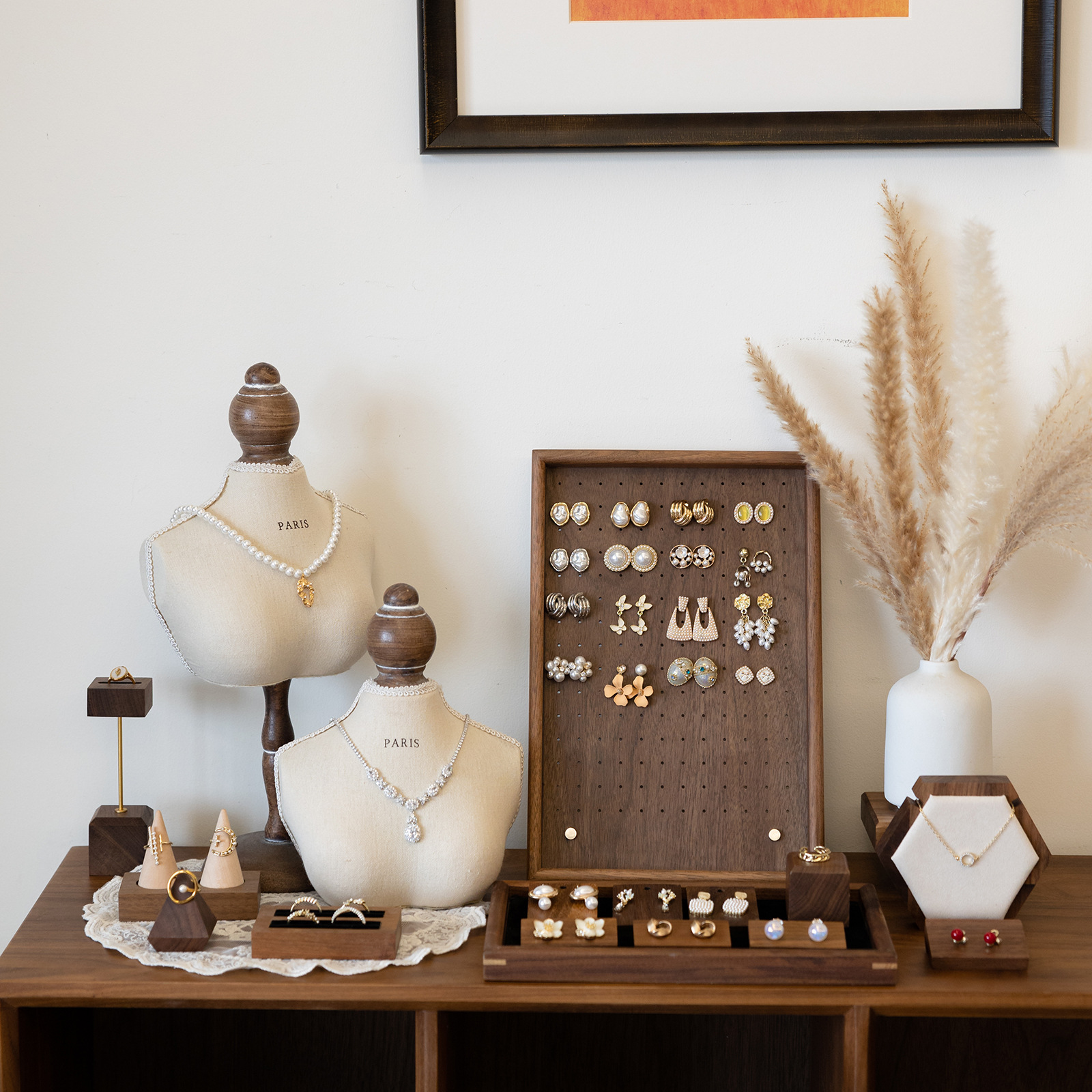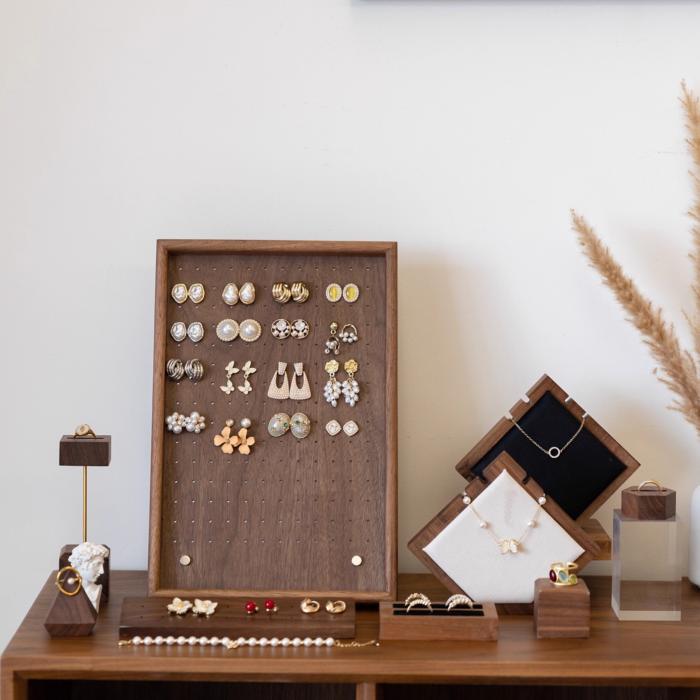 胡桃木アクセサリー展示棚イヤリングピアス展示棚縦型アクセサリー収納棚陳列ジュエリー写真撮影道具