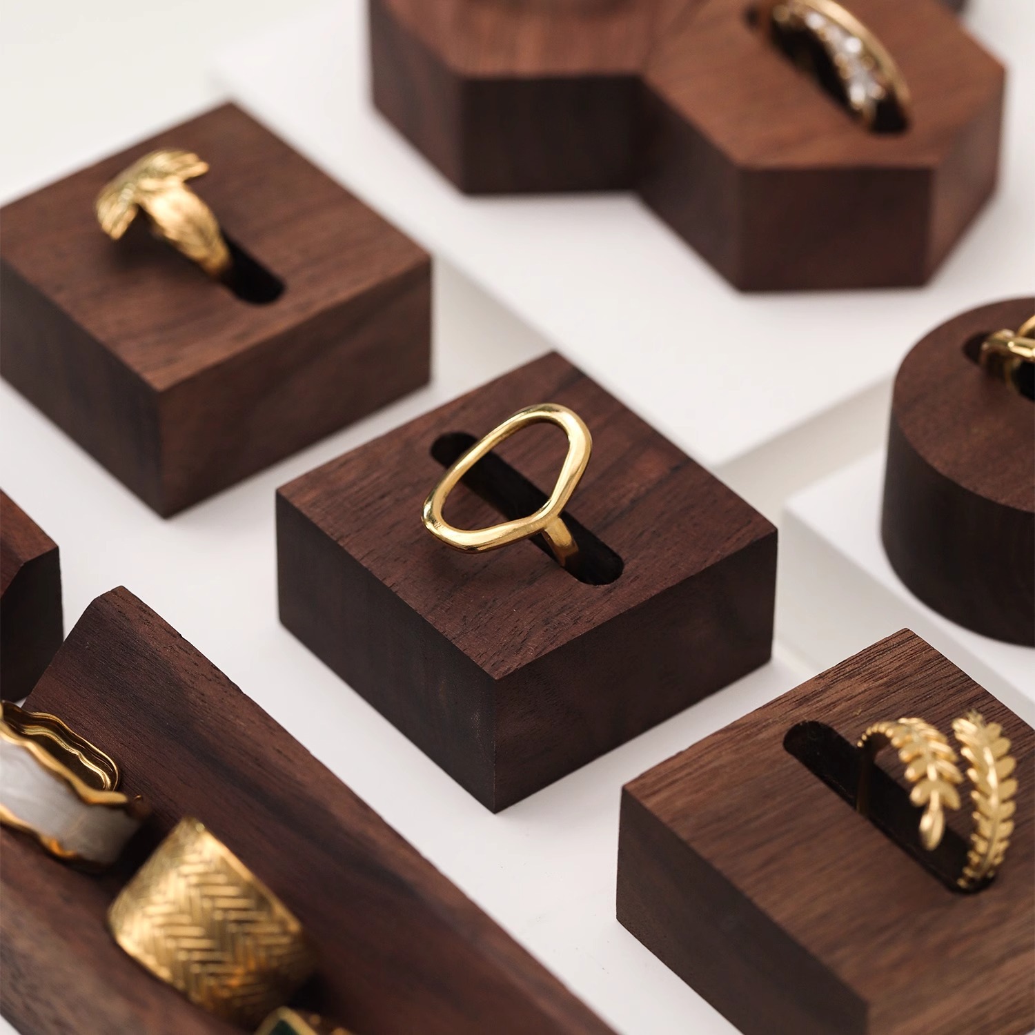 黒胡桃実木指輪展示棚高級アクセサリー指輪宝石店陳列展示指輪の撮影道具