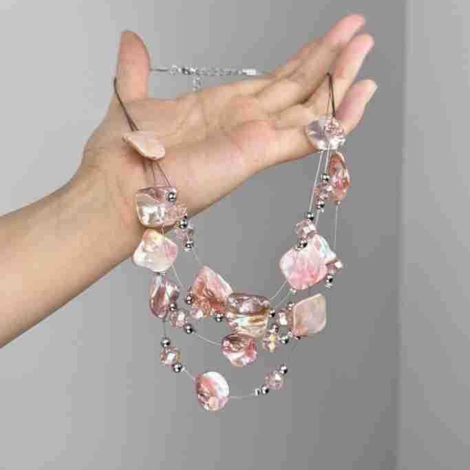 ユニークな多層ピンク不規則な砂利ネックレス女性のための 2025 新しい誇張された小さな多層鎖骨チェーンネックレス