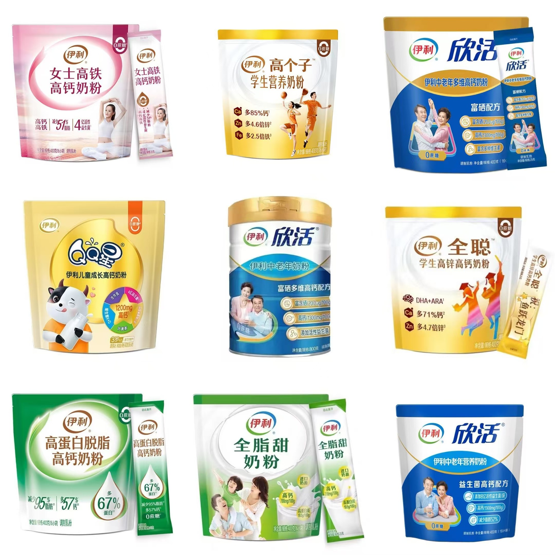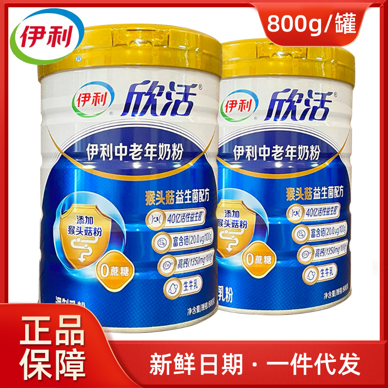 全国包邮伊/利欣活中老年奶粉800g生牛乳益生菌富硒高钙0蔗糖奶粉
