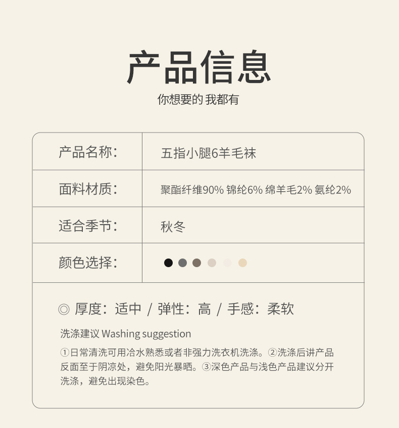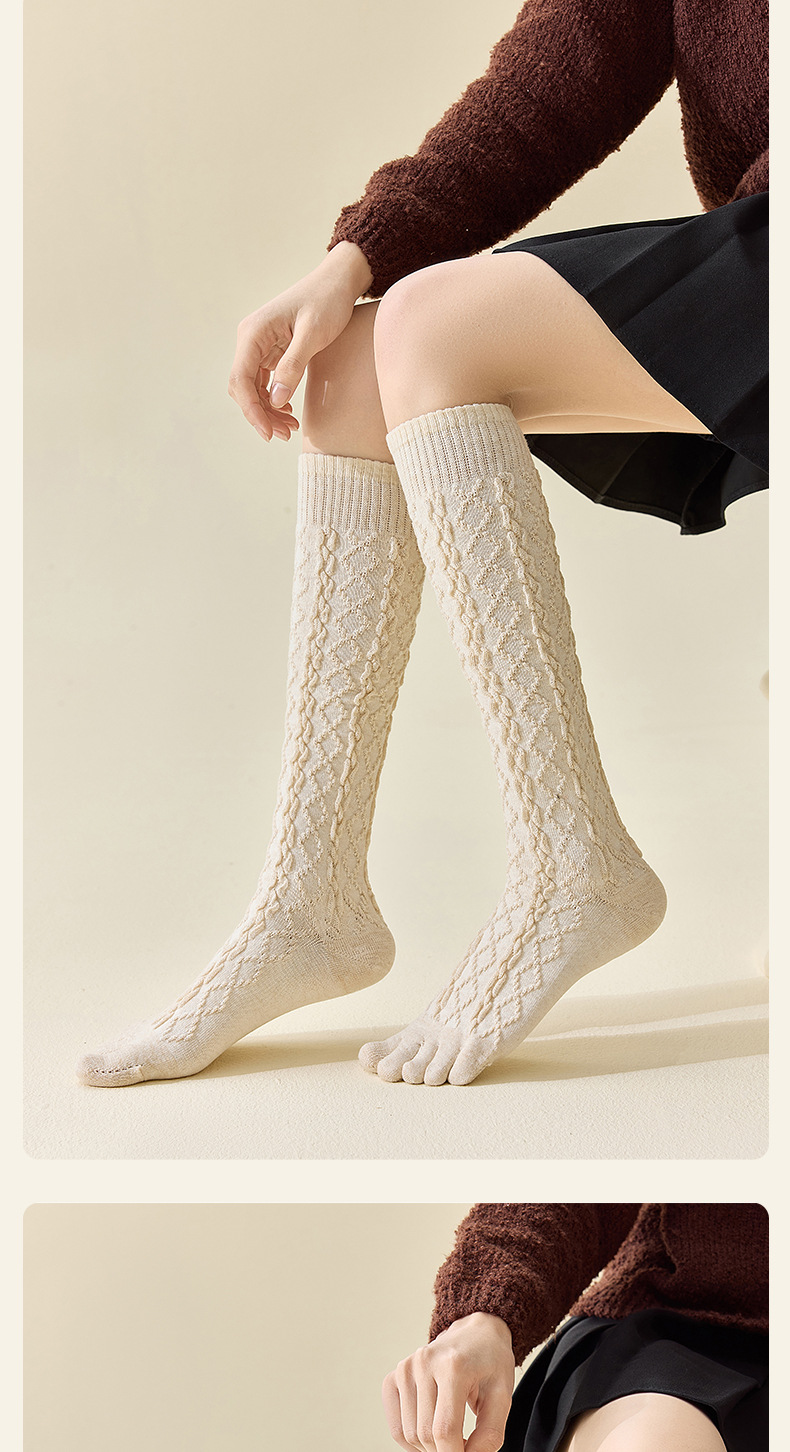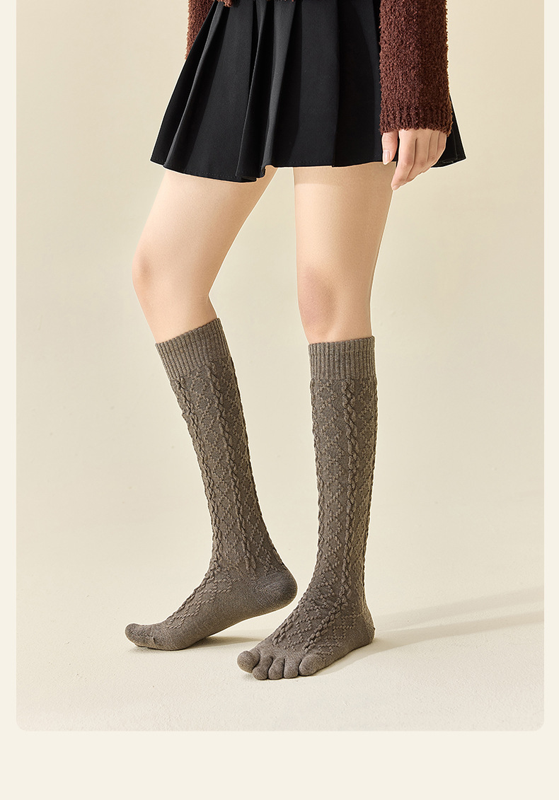 美拉德色系五指袜子女小腿袜五趾脚趾分趾袜女生羊毛薄款冬季女袜