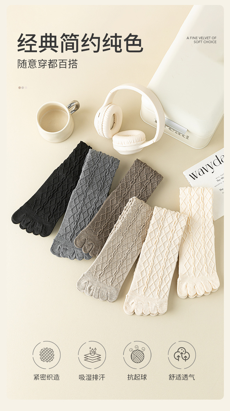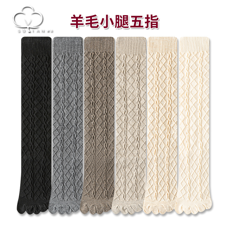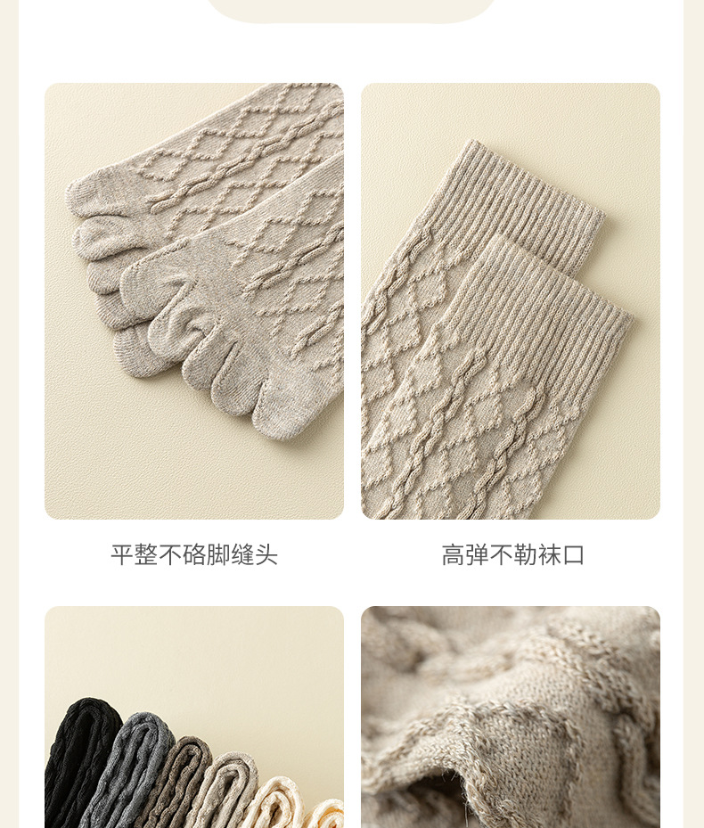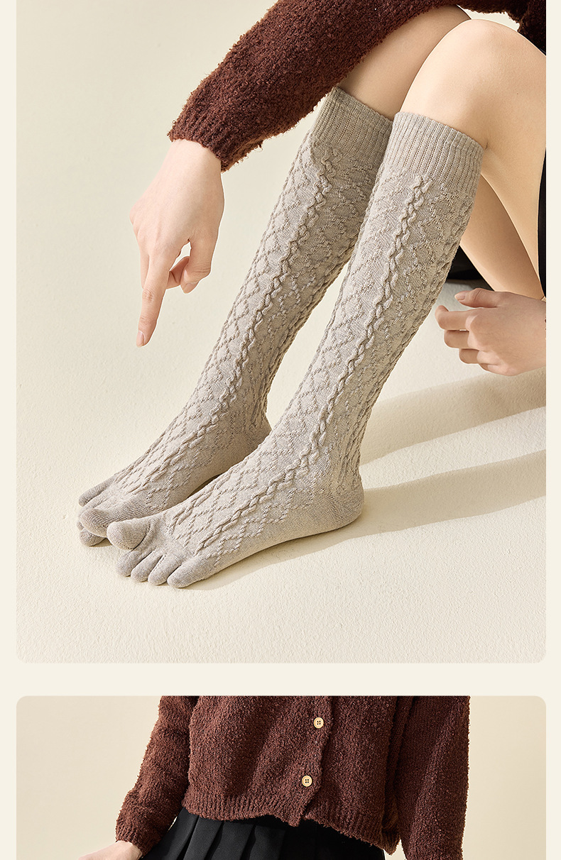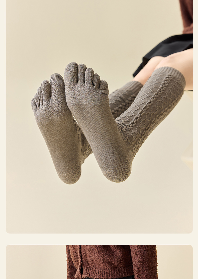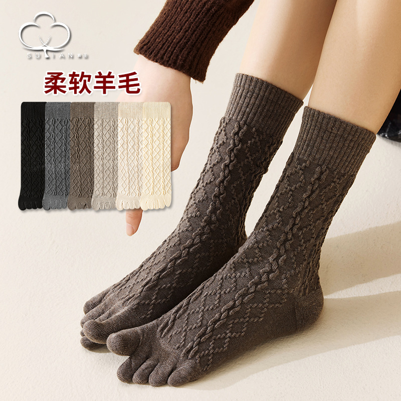 美拉德色系五指袜子女中筒袜五趾脚趾分趾袜女生羊毛薄款冬季女袜