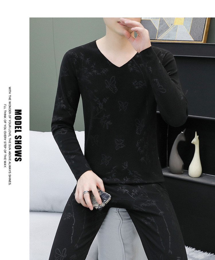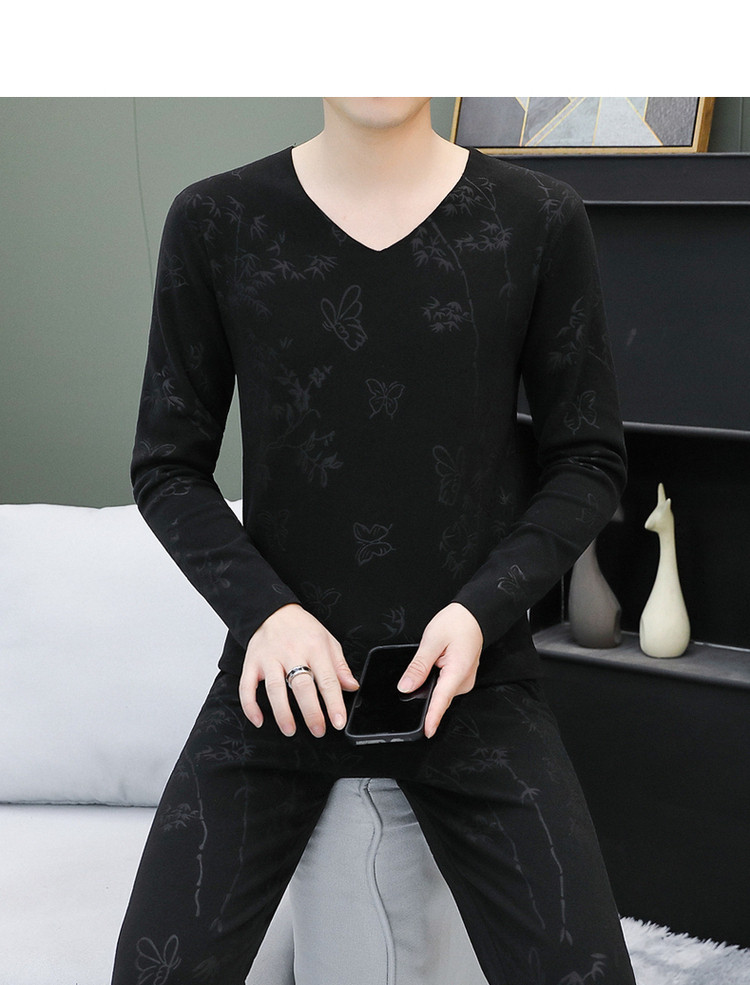 秋冬男性保温下着セット長袖tシャツ両面デコルテ無痕vネック秋衣秋ズボン男性用ボトム