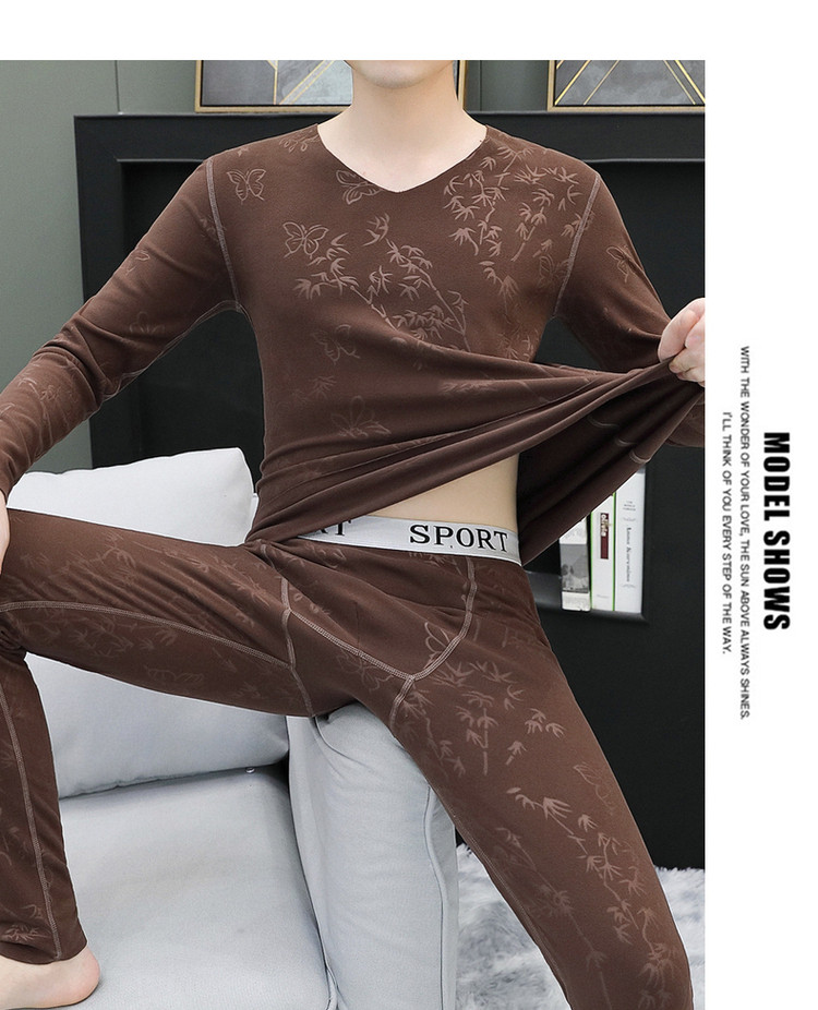 【高档提花德绒套装】2025冬季新款男士双面绒保暖内衣秋衣秋裤子