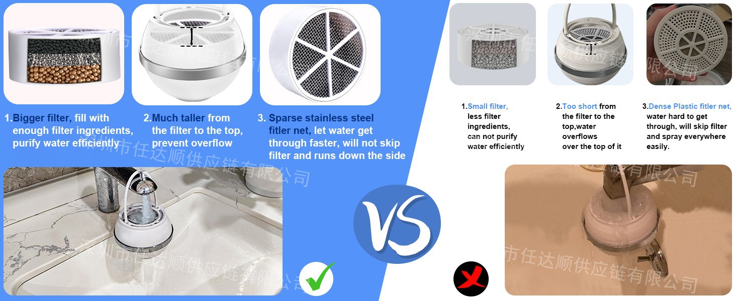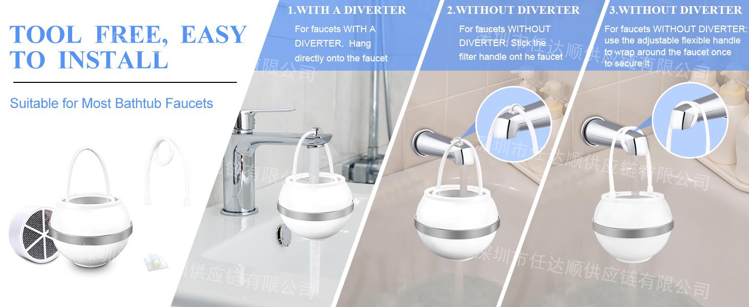 1.硬手柄直接挂在浴缸水龙头上,便携又方便。