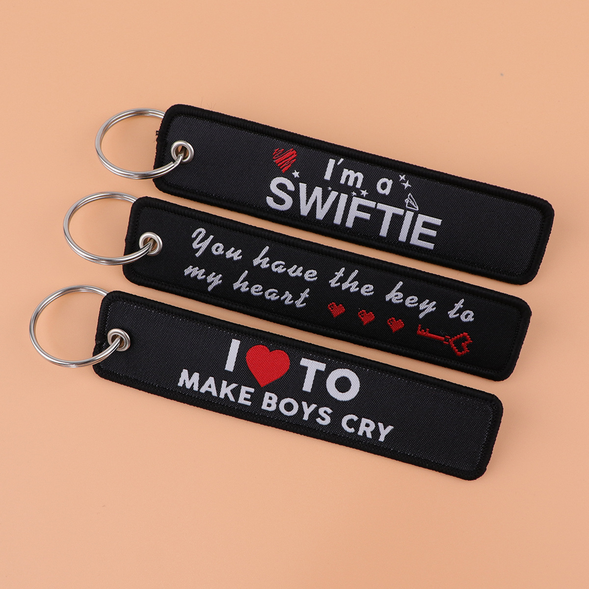 国境を越えた航空会社織りラベルキーホルダーストラップ学生オフィス ID ペンダント織りキーホルダー刺繍ペンダント