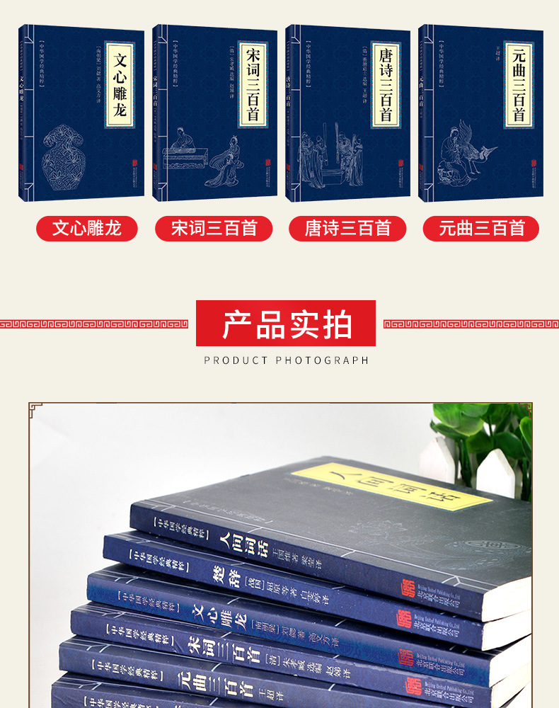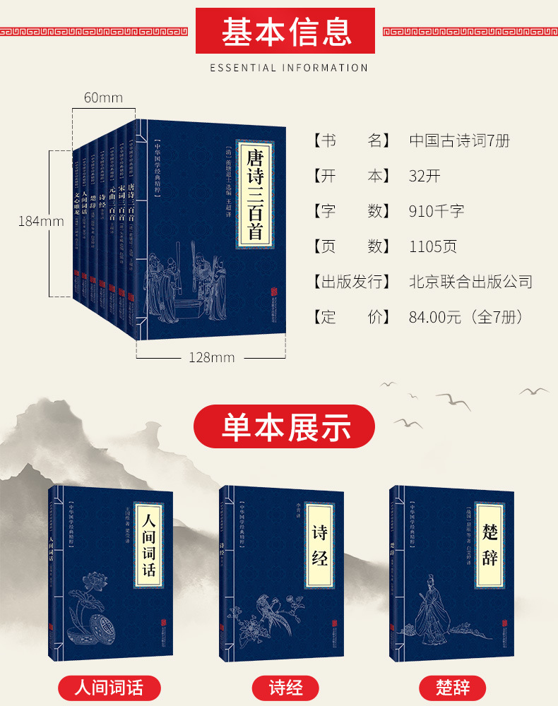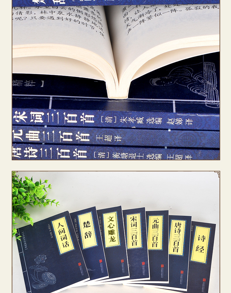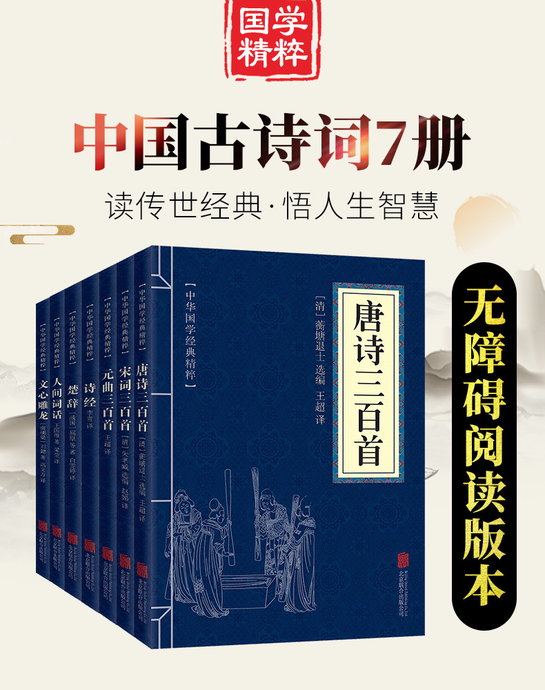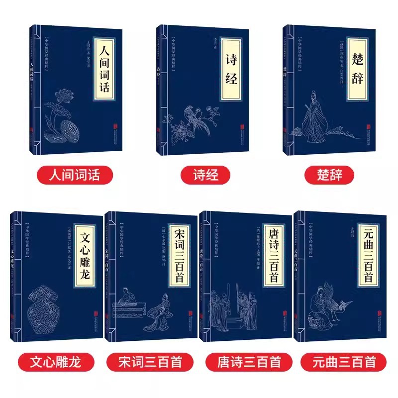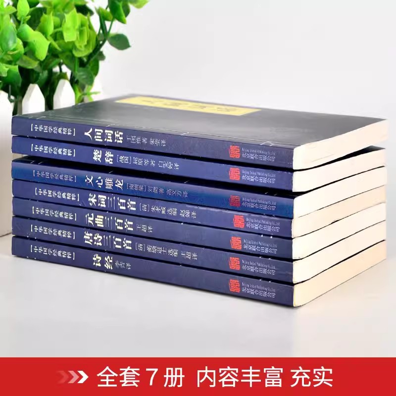 古诗词集书籍7册 中国古代诗词唐诗宋词元曲全集三百首 诗经楚辞文心雕龙人间词话古典歌赋中华好诗词中国诗词古诗三百首全集