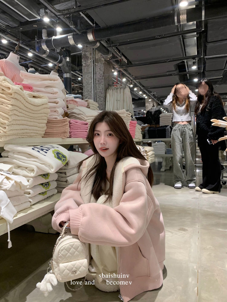 羊羔绒毛棉衣外套女2025新款秋冬季美式复古宽松加绒加厚工装棉服