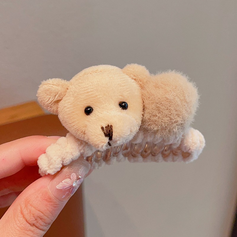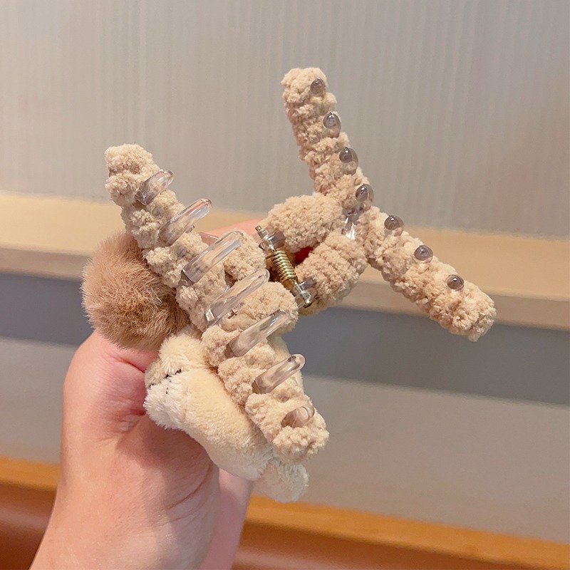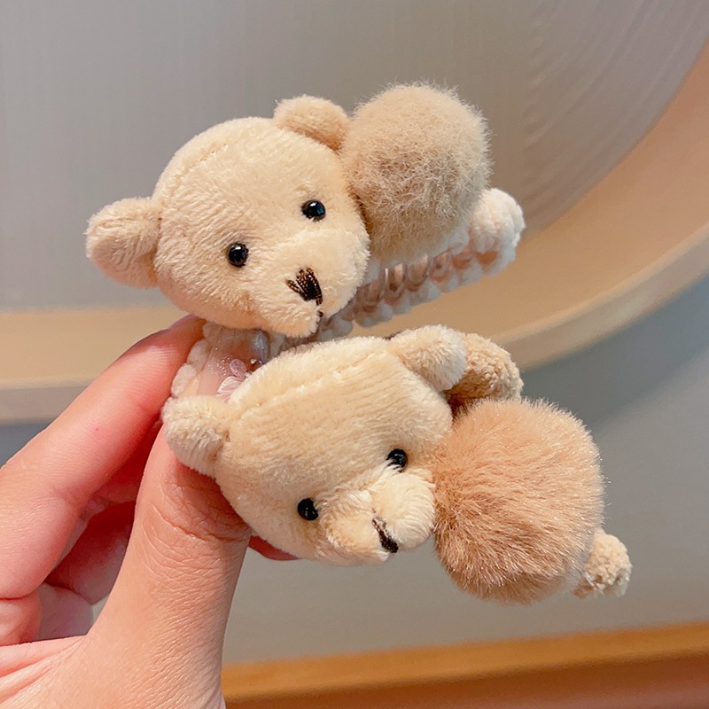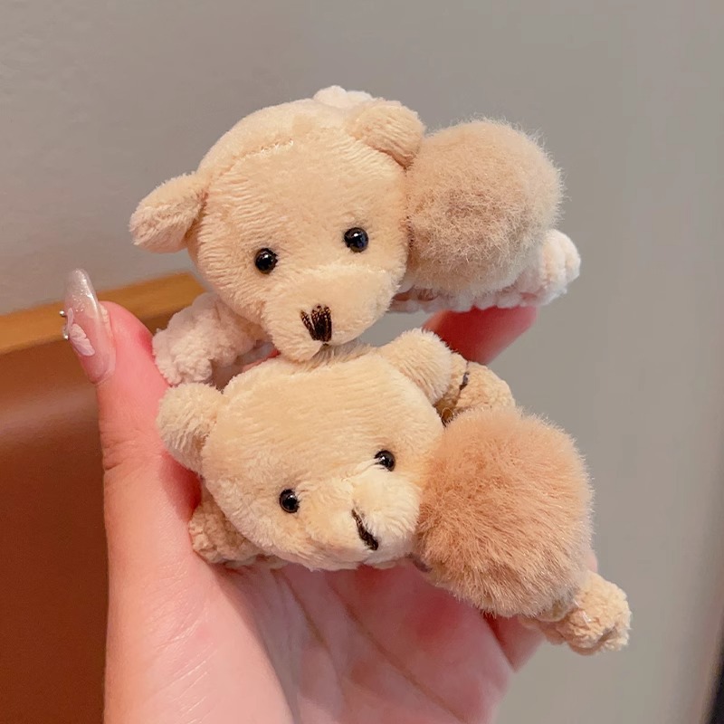 韓国版の毛玉の熊の子供のぬいぐるみは秋の冬のかわいい女の子の高い馬尾の髪を挟んで気質の半髪を刺します。