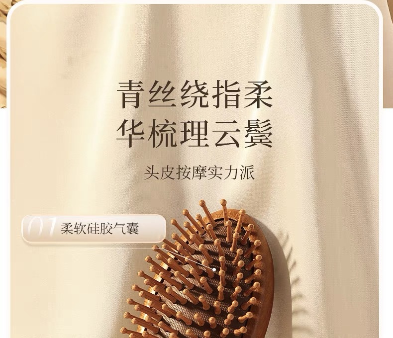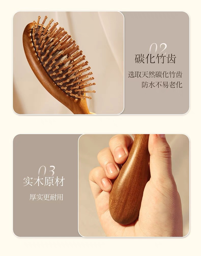 檀木气垫梳可爱便携气囊按摩梳头部头皮经络梳养发顺发长发卷发梳