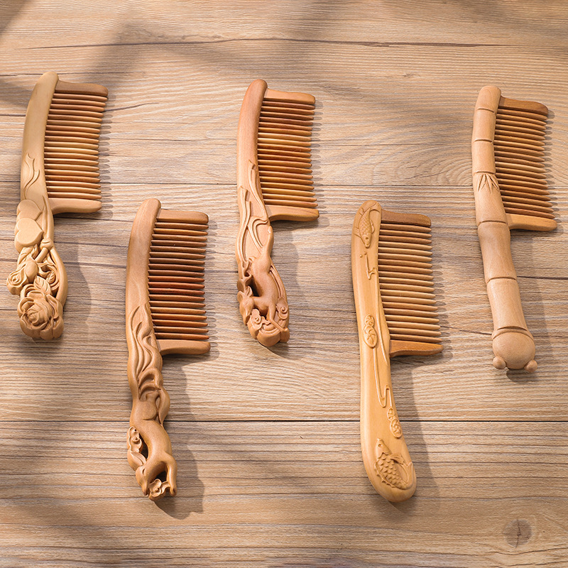 ピーチウッドコーム彫刻歯コーム彫刻コーム理髪コームマッサージコームハンドル彫刻コームメーカー卸売