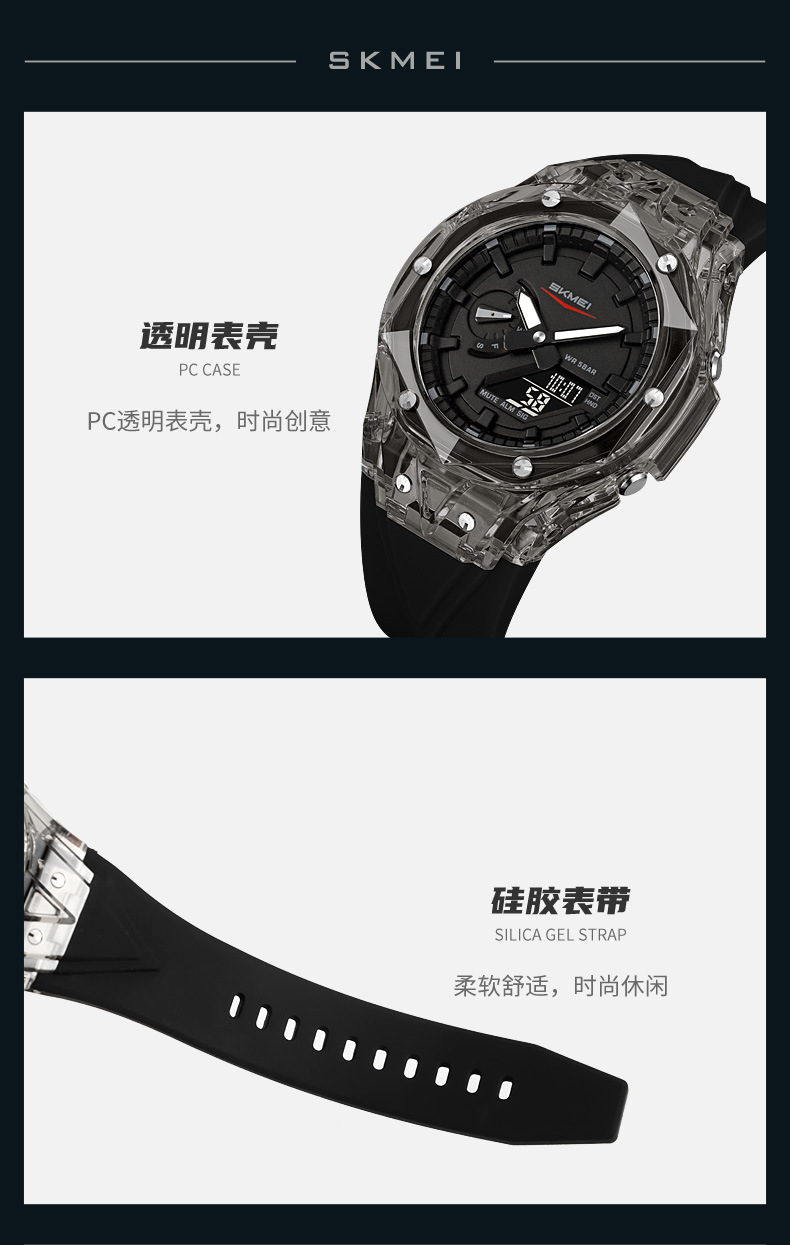 SKMEI美電子時計透明殻多機能学生5組目覚まし時計電子腕時計学生双顕腕時計