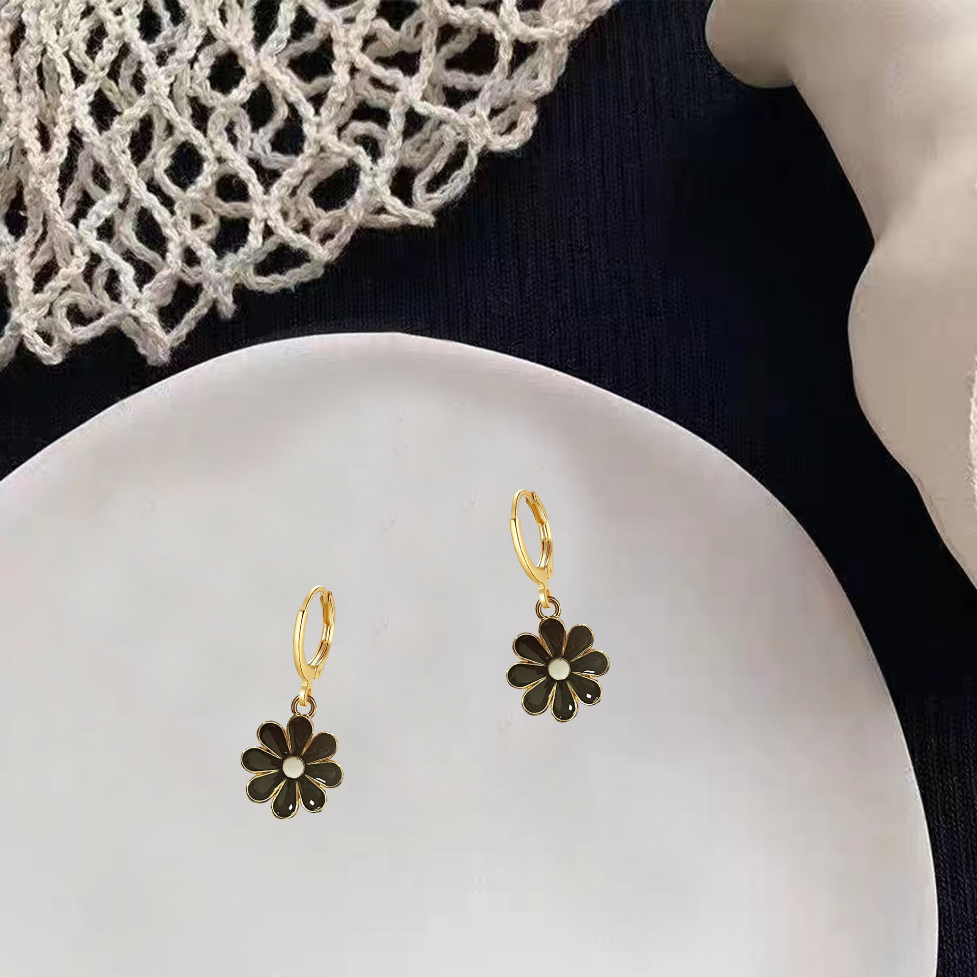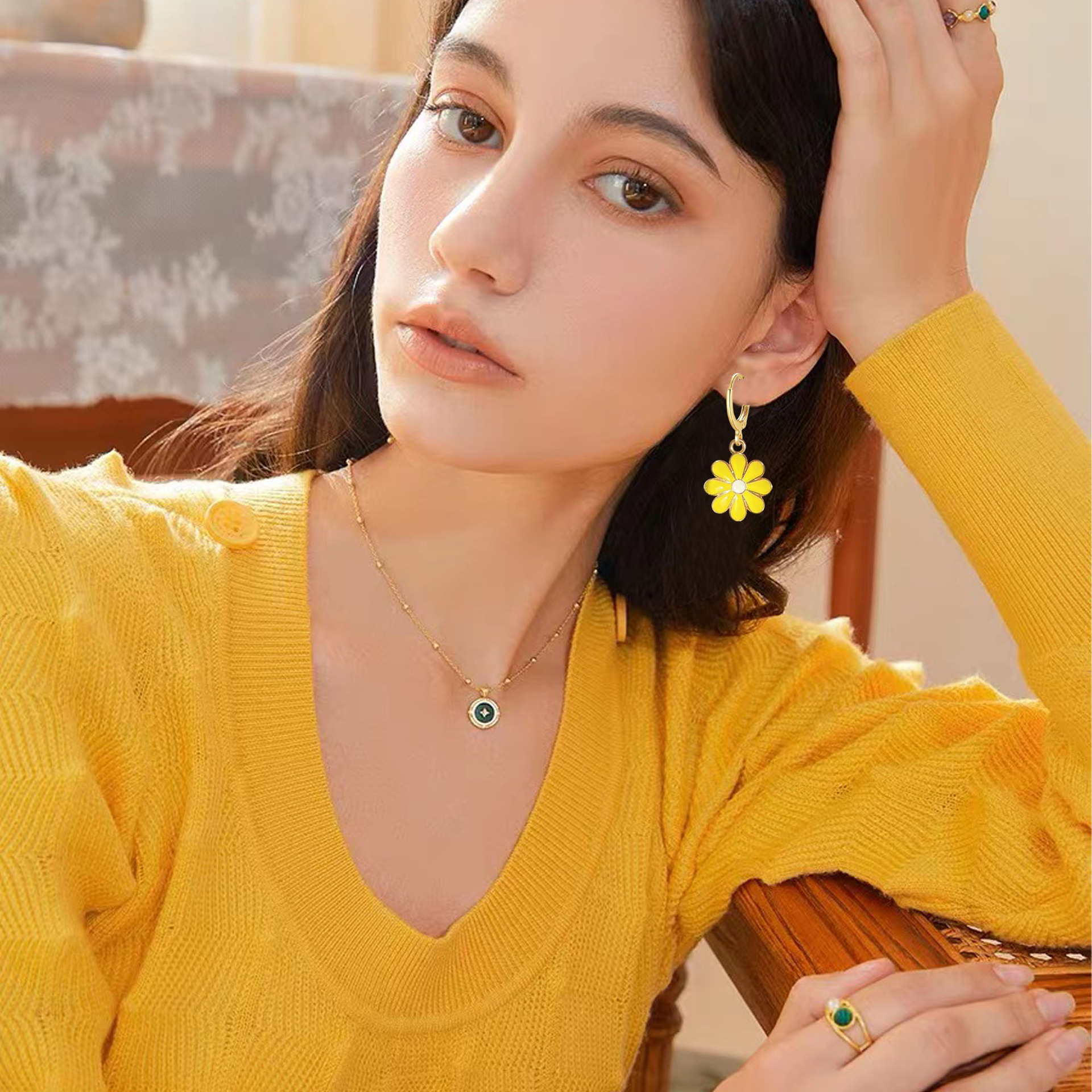 Hecheng滴油アクセサリーセット小清新デイジー耳掛け小菊イヤリングネックレス女性クロスボーダー